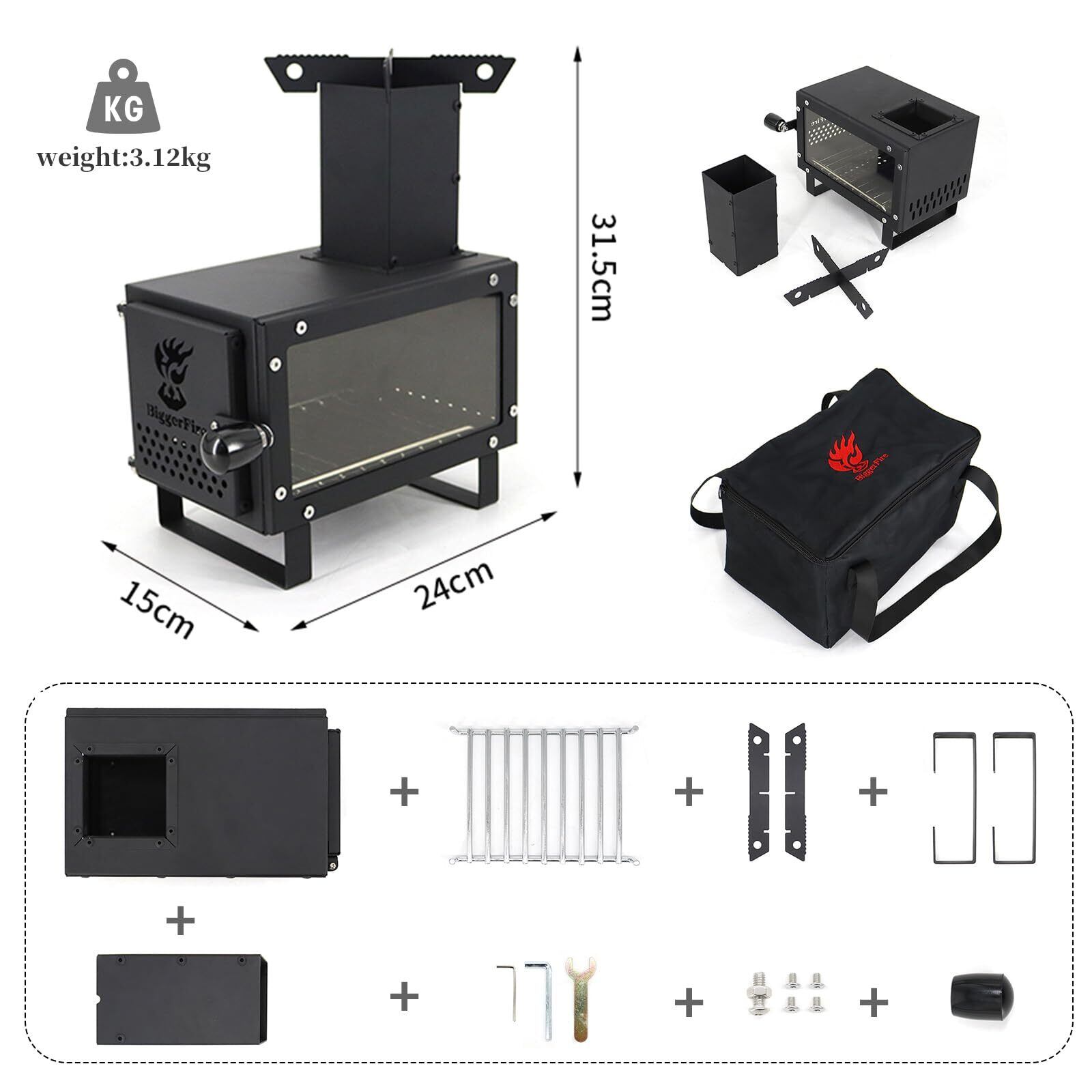 BiggerFireミニロケットストーブキャリングバッグ付き-アウトドアクッキング、キャンプ、ピクニック、バーベキュー、狩猟、釣りのためのポータブルウッドバーニングキャンプストーブ-小型軽量-テーブルの上で使用することができます、1-2人用のスチール製薪ストーブ | KSショップ