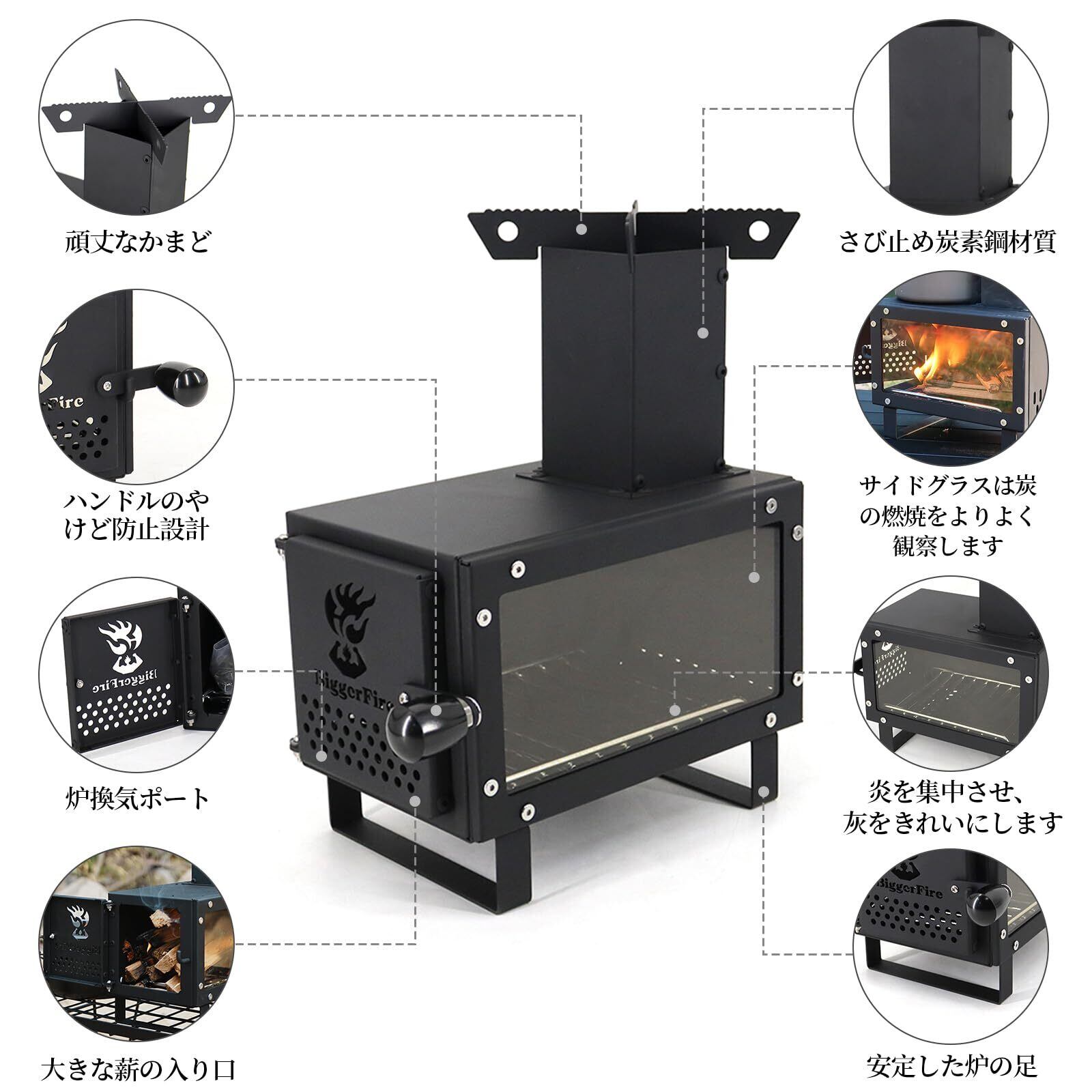 【サビに強い高品質スチール】キャンプ用薪ストーブは、錆びにくく、耐食性、耐久性に優れた高品質の厚鋼で作られているため、錆びない、強度が高い、耐熱性、耐低温性に優れているなどの特徴があります。 このストーブは、どんな過酷な屋外環境にも耐えられる頑丈さです。この卓上薪ストーブは操作が簡単で、初心者でも簡単・快適に掃除やメンテナンスができます!