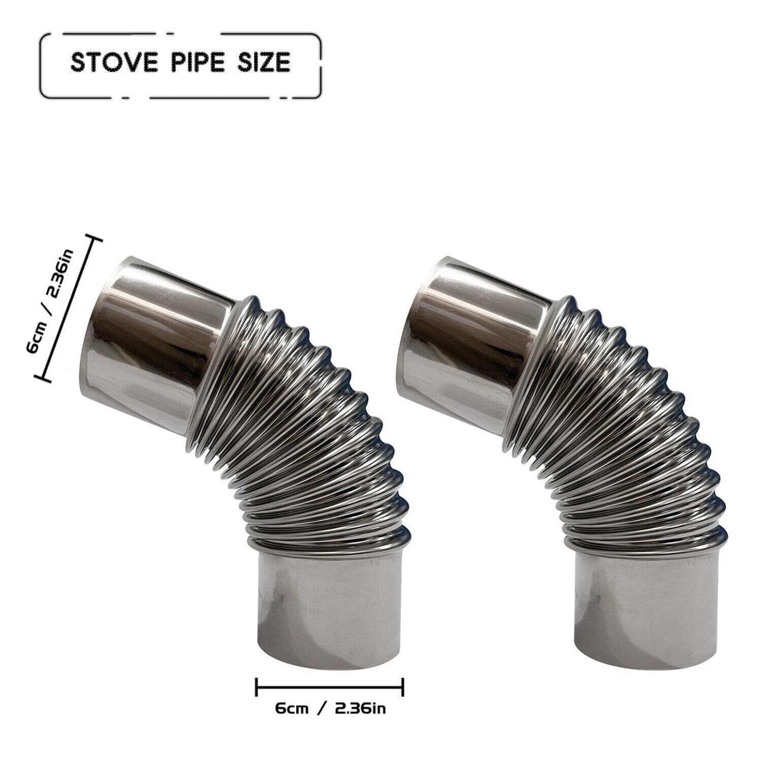 煙突チューブの直径6cm/2.36インチ。ほとんどの屋外ポータブル薪ストーブ、ストーブジャック付きテント、屋内給湯器パイプに適しています。