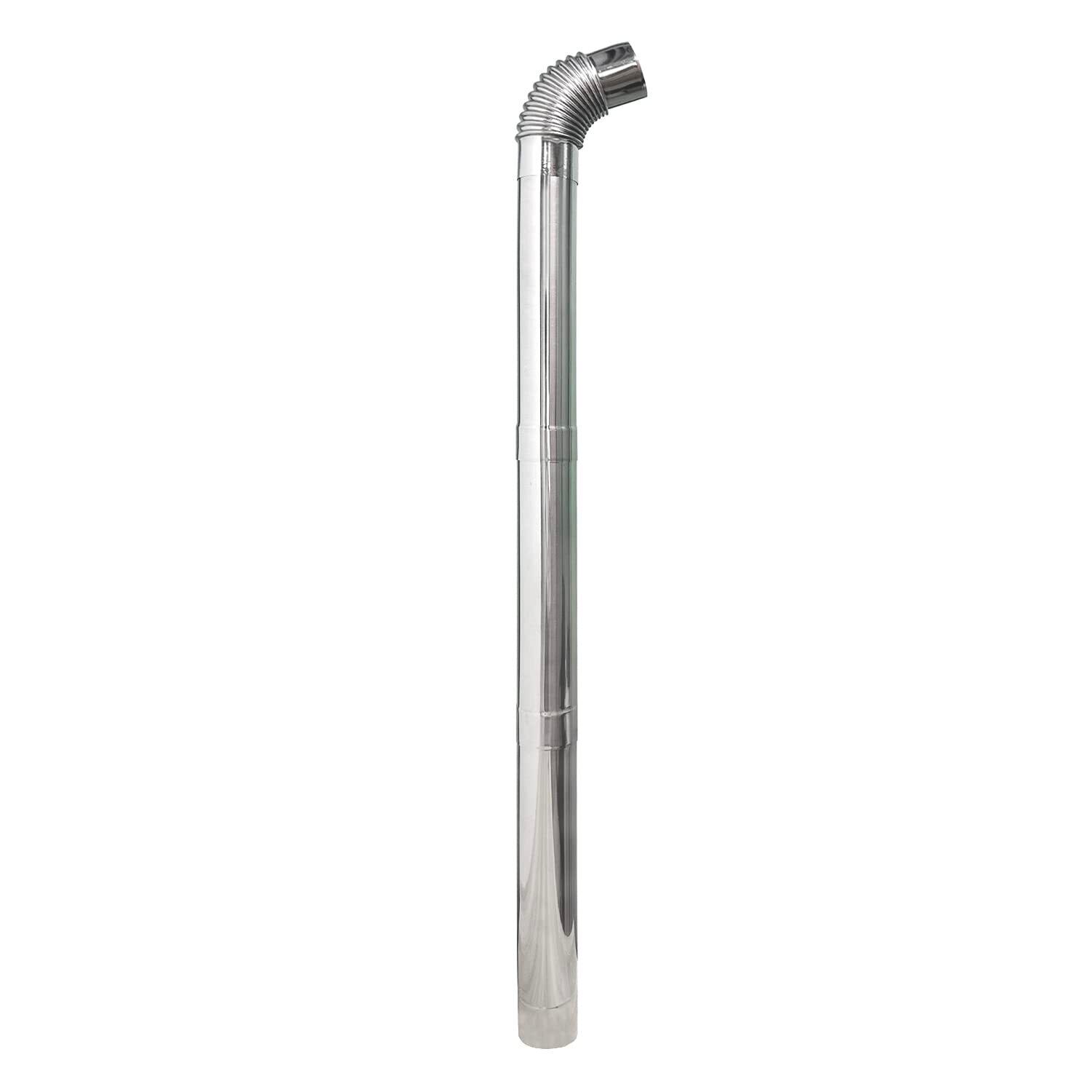 45度ステンレススチールストーブパイプ2本入り。重量はわずか0.5ポンド。