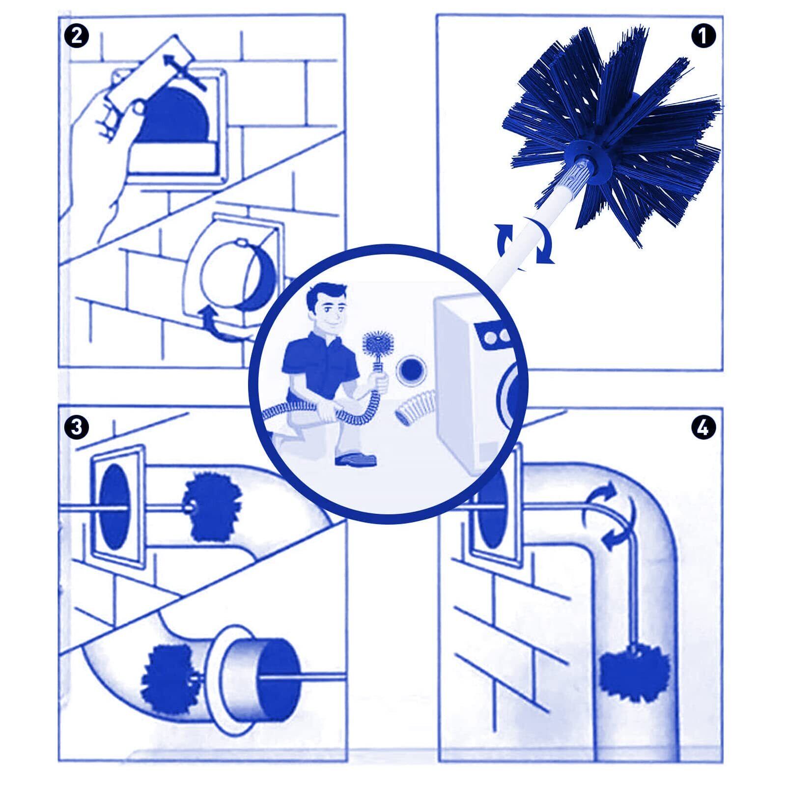 【煙突掃除ブラシ 操作が簡単】9つの乾燥機の排気洗浄レバーを簡単に接続し、状況に応じて掃除の範囲を広げることができます。乾燥機の通気口を自分で掃除するのは安全で、お金も節約できるでしょう。汚れの堆積や不測の火災による高価な修理費用を回避するのにも役立ちます。
