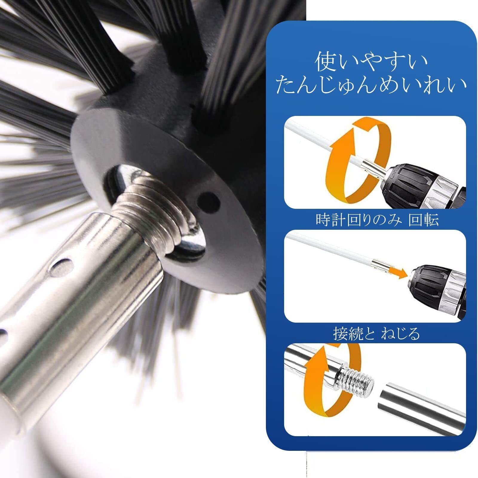 【煙突掃除ブラシセット内容】2×煙突掃除ブラシ、9本 の耐久性のあるロッドを含みます、1Xインパクトドライバー用接続バー付属。煙突掃除ブラシ サイズ:41cm ブラシ線材料:ナイロン、耐摩耗性があり、耐用年数が長く、壊れにくい。