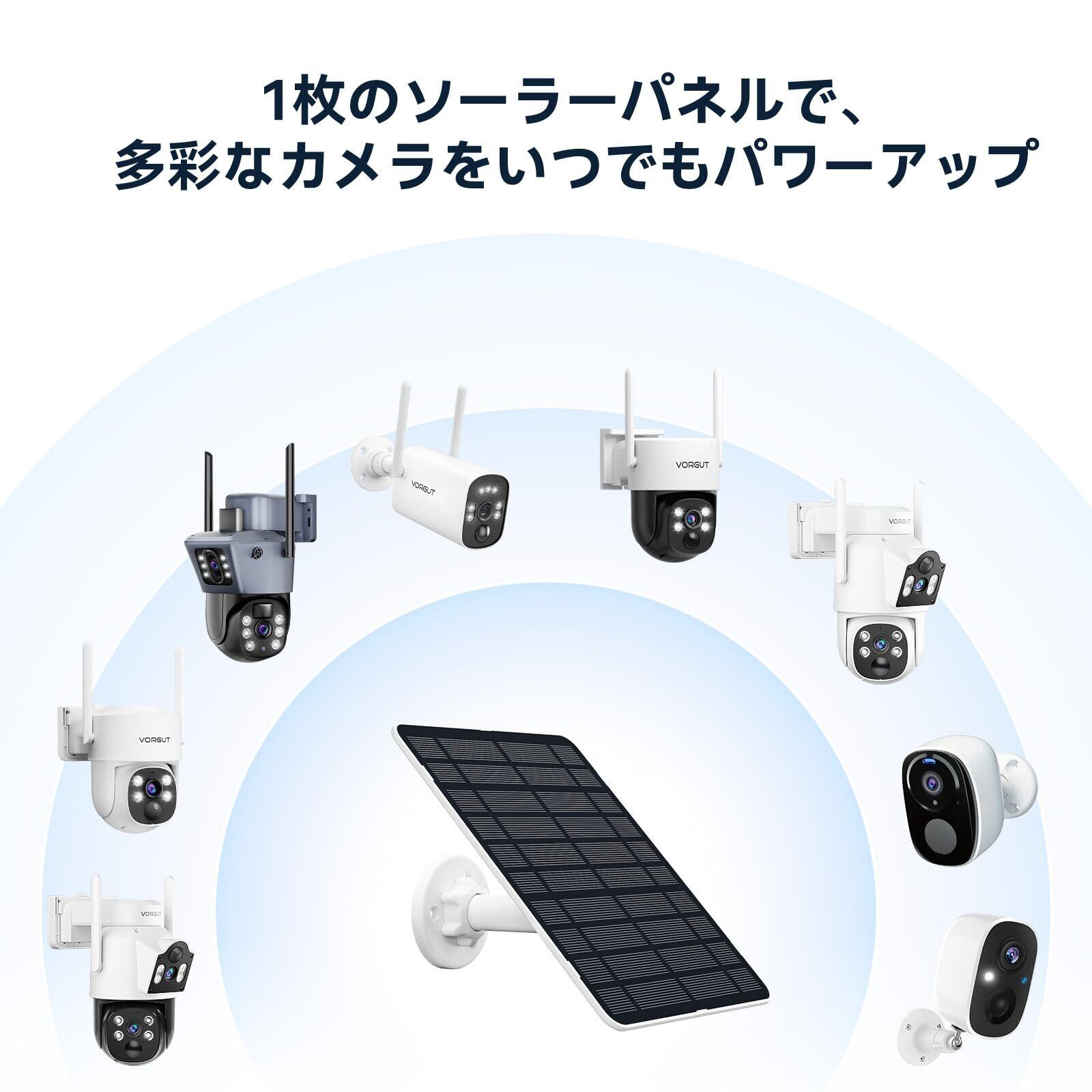 VORGUT ソーラーパネル 5W/5V 防犯カメラ用 3Mケーブル付き 屋外対応 IP66防水 太陽光充電パネル バッテリー対応 USB-C端子