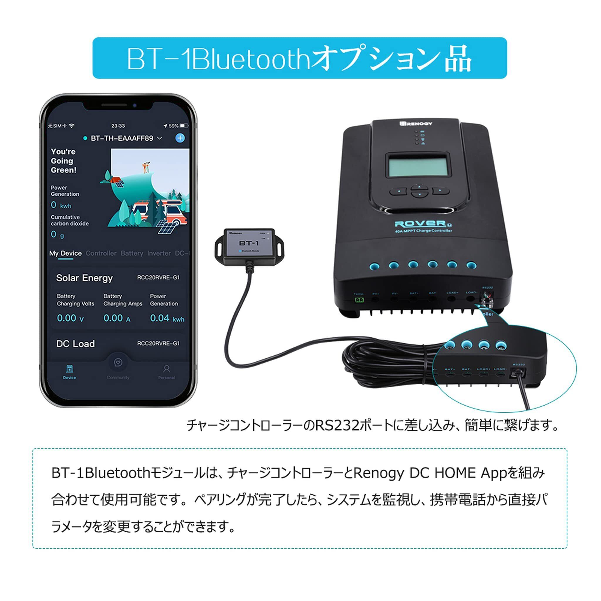 RENOGY 40A MPPT チャージコントコントローラーセット(BT-2モジュール付き)12V/24V用 LCD液晶画面付き 多様なバッテリー対応 自己診断機能、電子保護機能 太陽光発電 災害対策 停電 防災予備品 車中泊 船 キャンプ