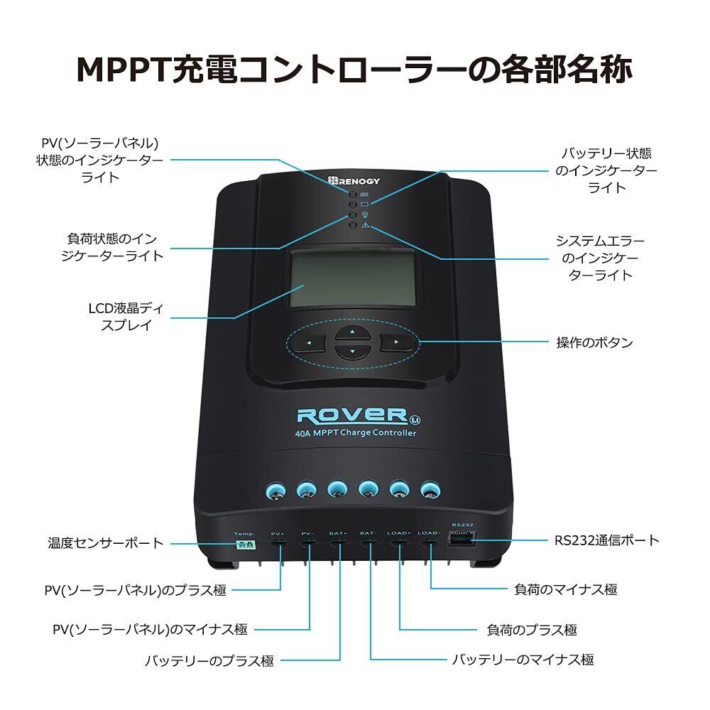 RENOGY 40A MPPT チャージコントコントローラーセット(BT-2モジュール付き)12V/24V用 LCD液晶画面付き 多様なバッテリー対応 自己診断機能、電子保護機能 太陽光発電 災害対策 停電 防災予備品 車中泊 船 キャンプ | KSショップ