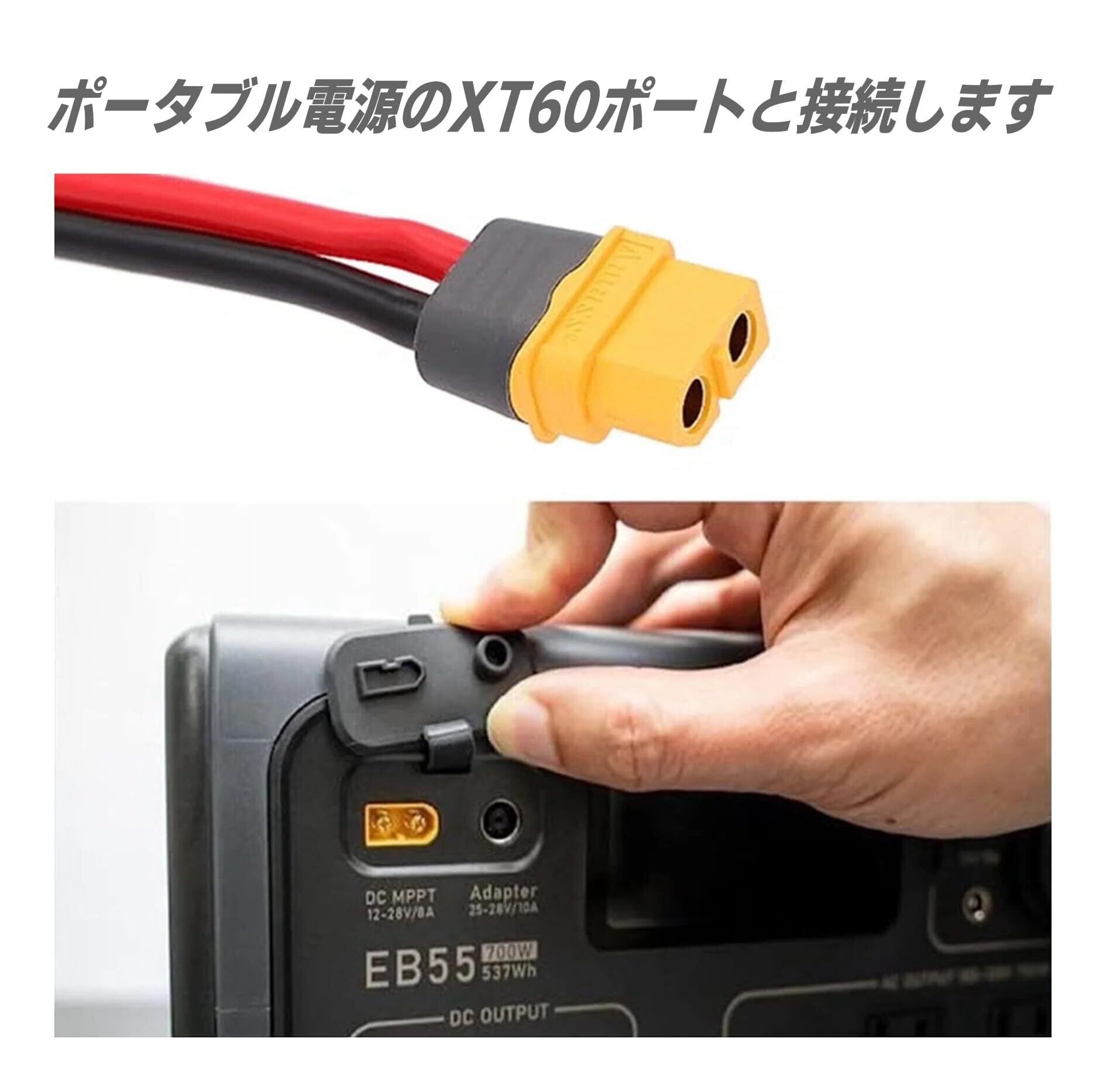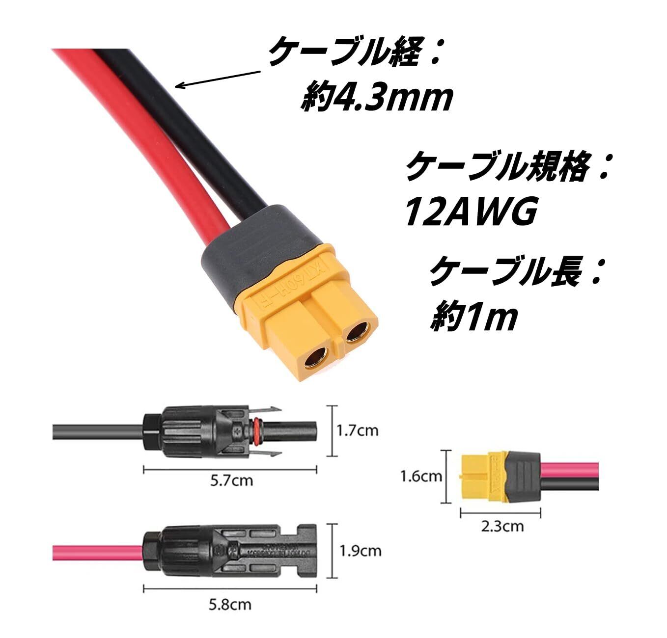 【仕様】 □MC4(赤・黒)-XT60(メス) □ケーブル規格:12AWG □耐熱:200℃ □ケーブル長:約1m