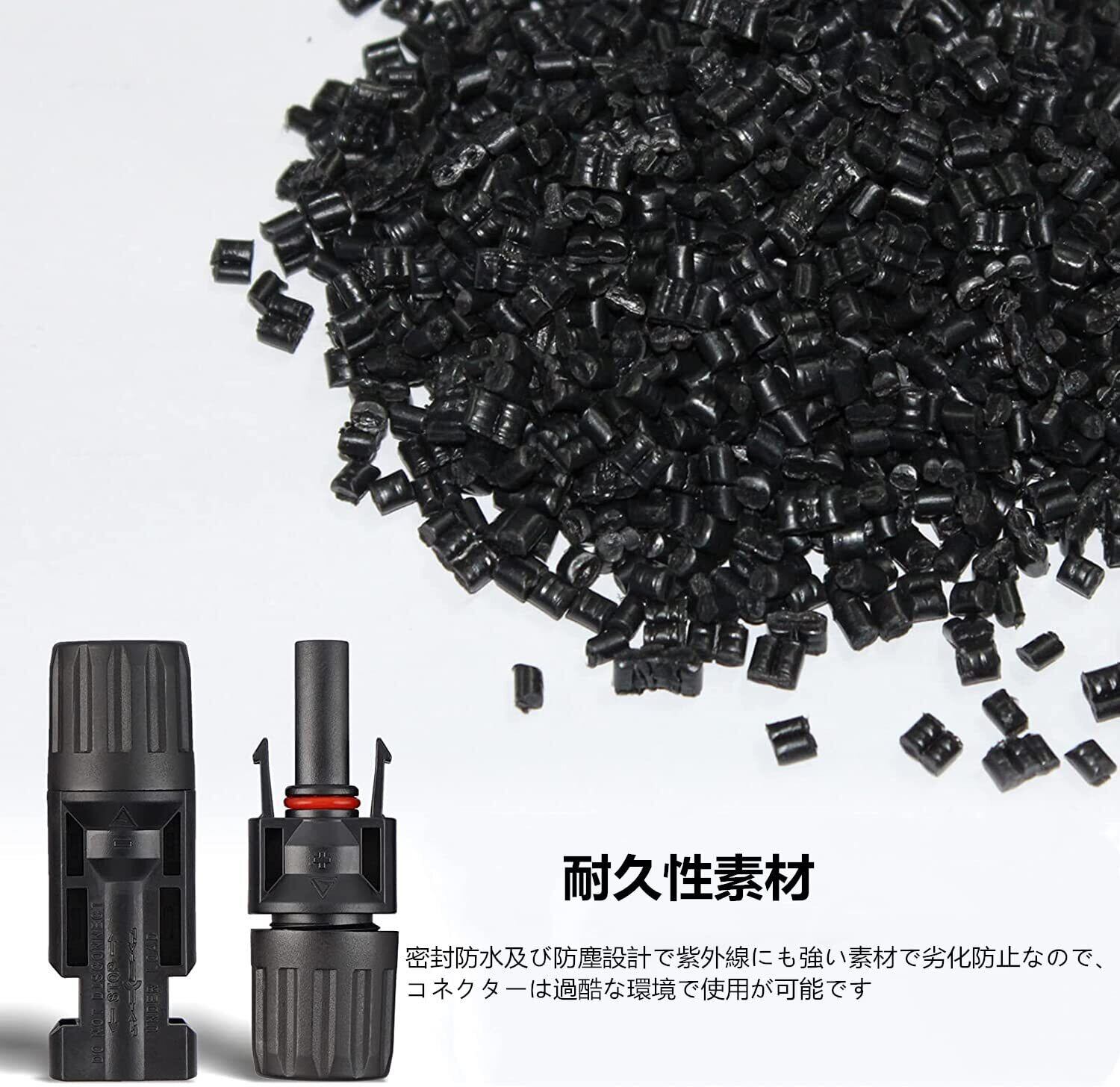 【耐久性優れた】防水及び防塵・耐久設計で紫外線にも強い素材で劣化防止なので、コネクターは過酷な環境で使用が可能です。
