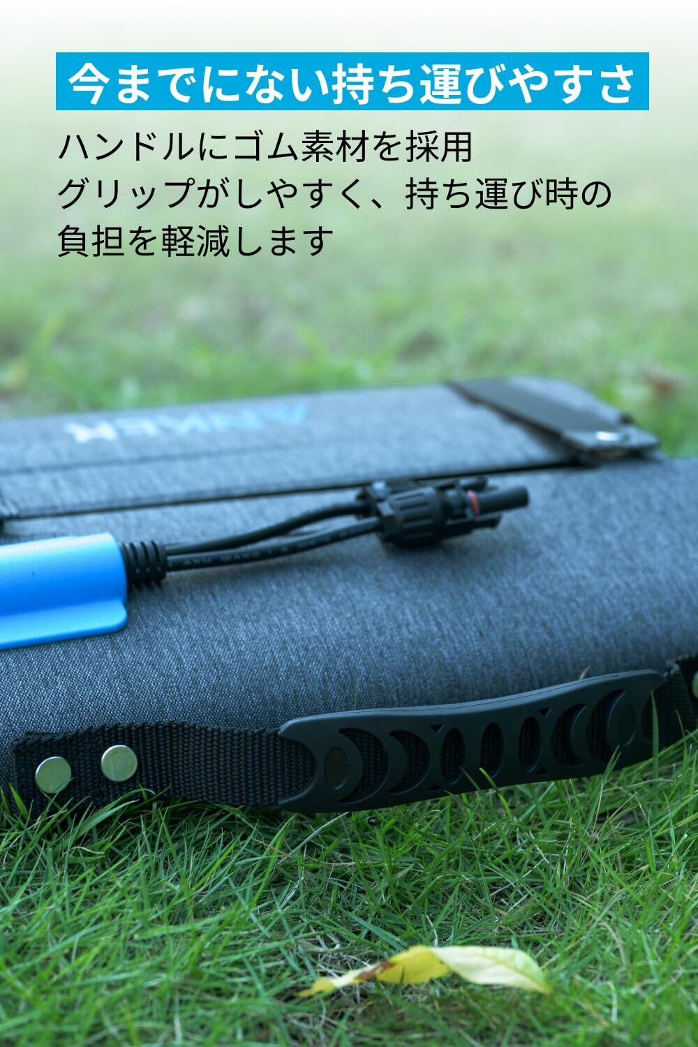 今までにない持ち運びやすさ:「Anker Solix PS100 Portable Solar Panel」から約25%軽量化し、約1.1kg軽くなりました。さらに、本製品はハンドルにゴム素材を採用しているため、手への負担も軽減します。