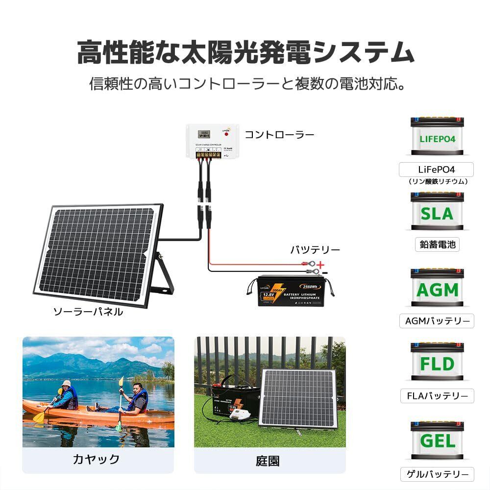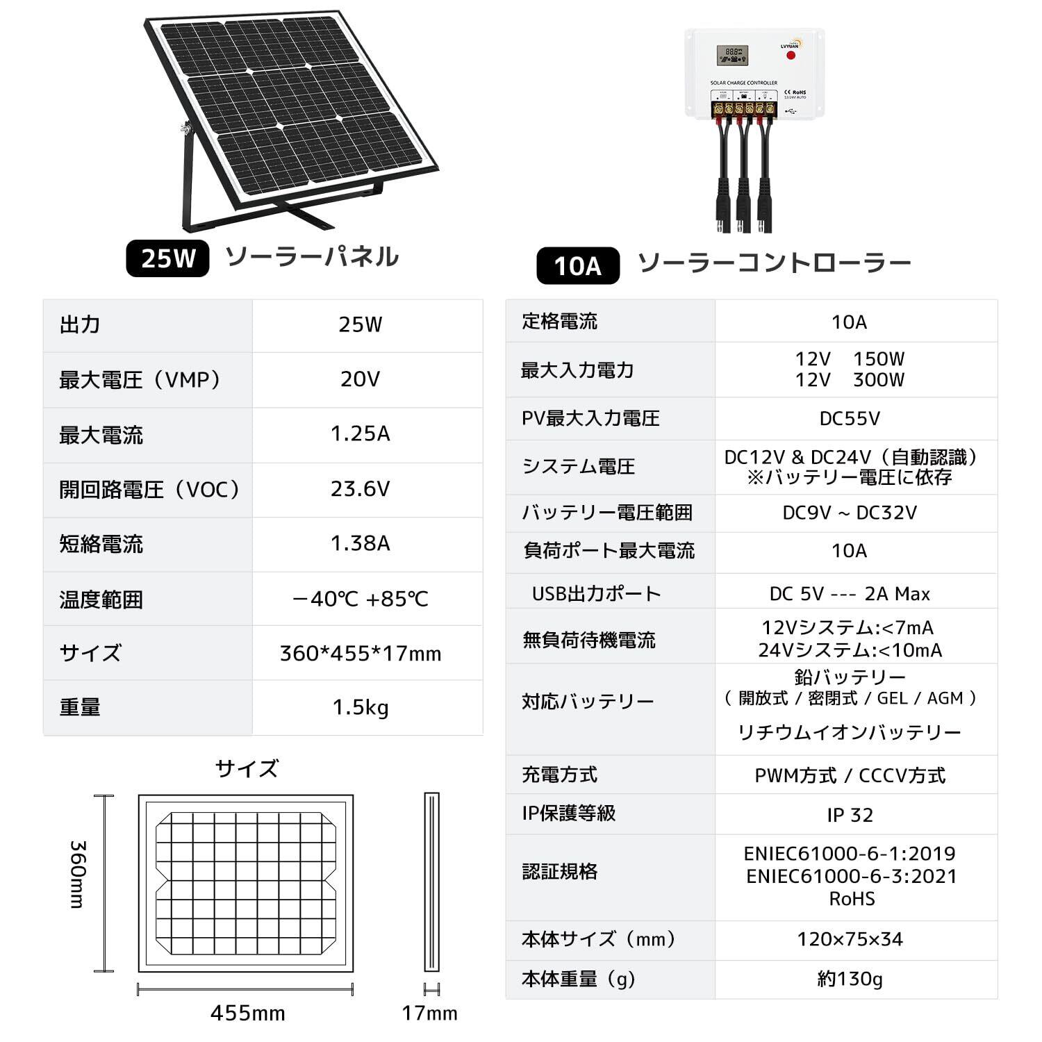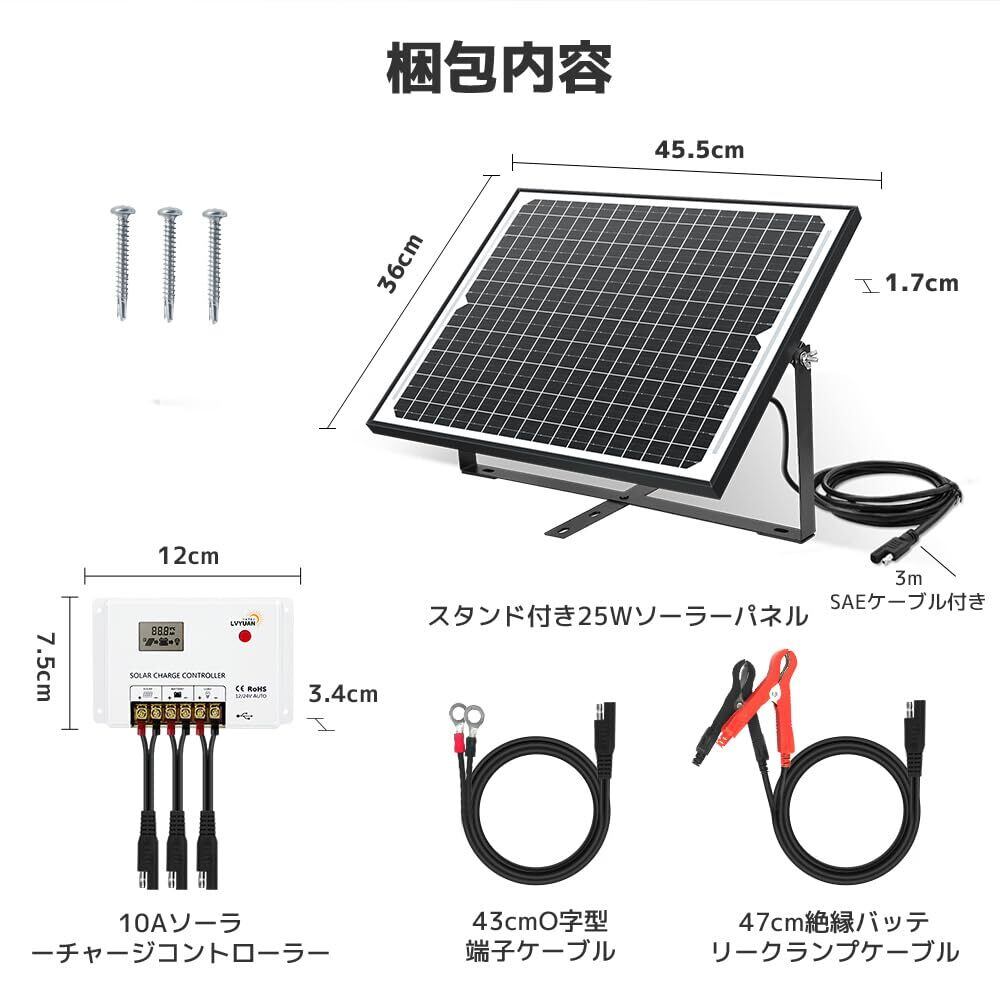 【新型HC2410チャージコントローラー搭載】LVYUAN 25W 単結晶 12V ソーラーパネルセット システム充電 太陽光充電器 LiFePO4対応・リチウム活性化機能 防水・非常用 屋外用ソーラー・RV・車用 SAEケーブル&金具付き | KSショップ