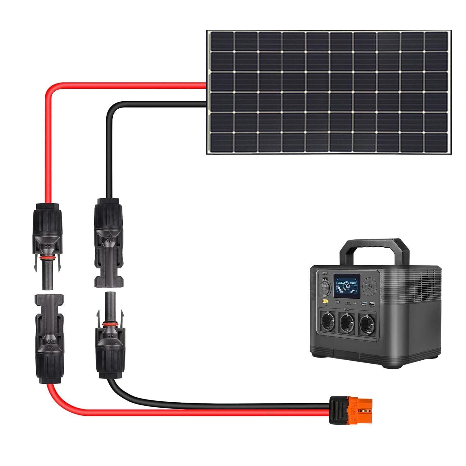 xt60i mc4 ケーブル: 太陽電池パネルと太陽光発電機を接続するために使用され、すべての太陽光発電機発電所のLipo電池パックとXT60ポートを持つ任意の設備に適用される。ソーラーパネルのソーラーコネクタのプラス端子とマイナス端子をチェックして、正しい接続を確認してください。