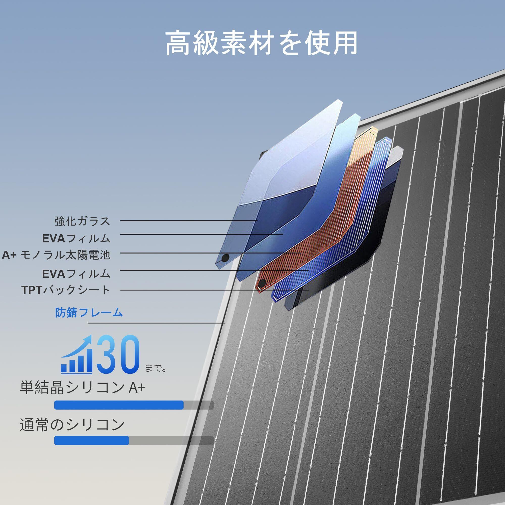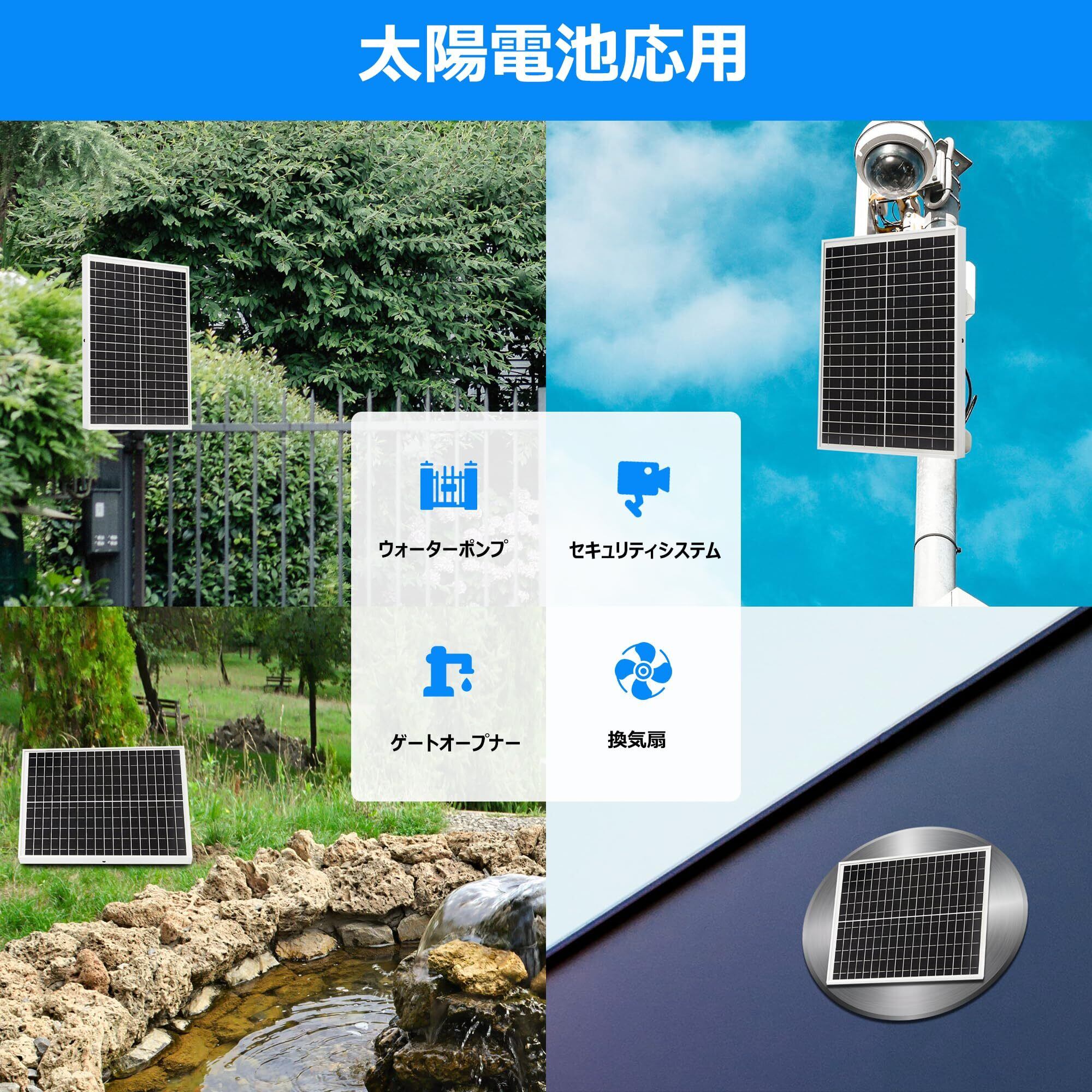 【23%転換効率】高効率の単結晶セルで作られた 20W のソーラー パネルは、最大 23% の実効変換率を実現します。ソーラーパネルは強化ガラスと屋外防水 IP67を使用します。10 年以内に 90% の性能、25 年以内に 80% の性能です。
