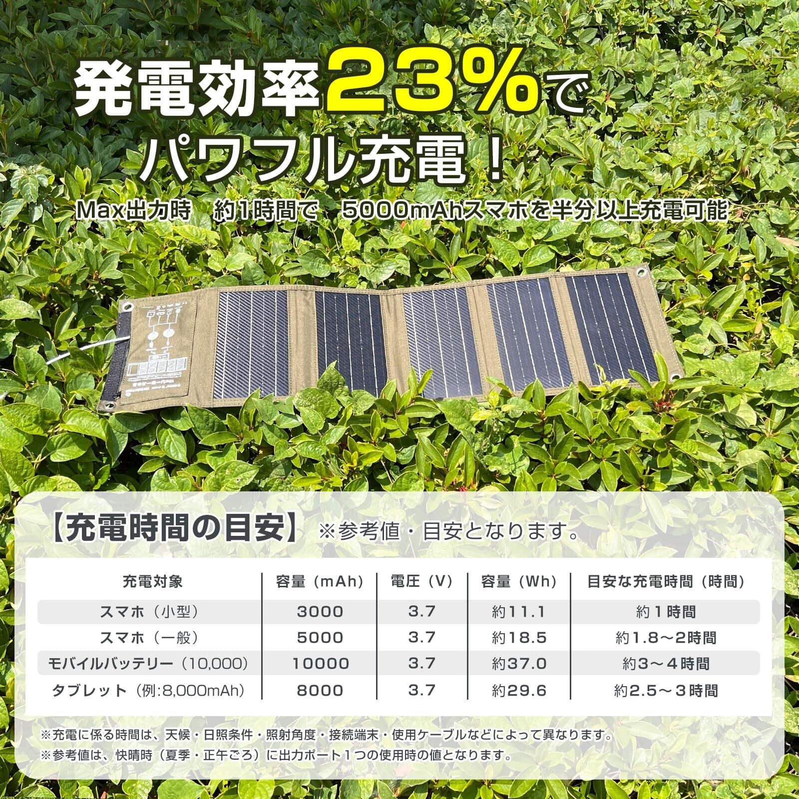 【高転換率】折り畳み式の小型ソーラーパネルで、高転換効率23%を実現した日本製のソーラー充電器です。18W出力のモバイルバッテリーとして、アウトドアや災害時にも安心してご利用いただけます。
