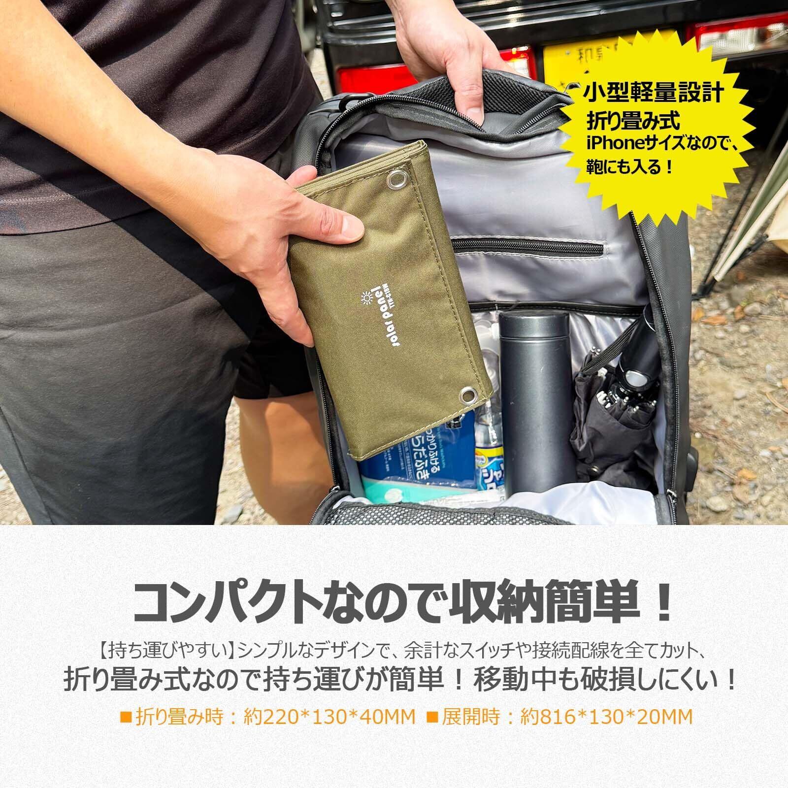 【財布サイズ】コンパクトながらパワフルなソーラーパネル 小型設計で、バッグやリュックに収納可能。アウトドアや緊急時の発電機として、ソーラーパネル 100Wクラスの実用性を実現しました。
