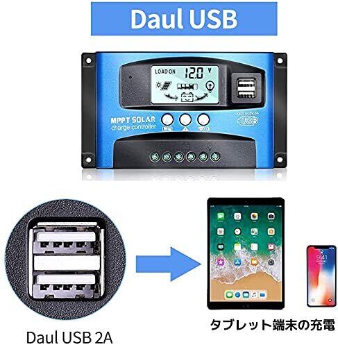 太陽パネルチャージコントローラー:12V/24Vシステム対応 最大放電電流100A デュアルUSB 出力5V / 2A ポート搭載 インテリジェント制御 工業用マイクロコントローラー内蔵 設定値不揮発記憶 停電時もデータ消失なし 多様なパラメータ設定可能
