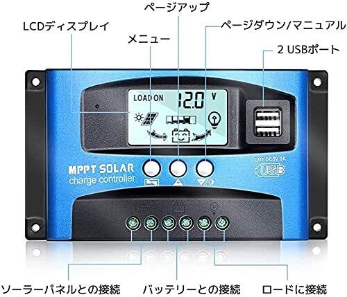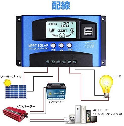 リアルタイムモニタリング:MPPTチャージコントローラー リアルタイムでソーラーパネルの電圧と電流を検出でき、常に最大電力を追跡できるため、システムは常に最大電力でバッテリーを充電できます。 大型LCDディスプレイはすべての調整可能なパラメーターを表示します(詳細ページではリアルタイムの日本語の指示も表示されます)