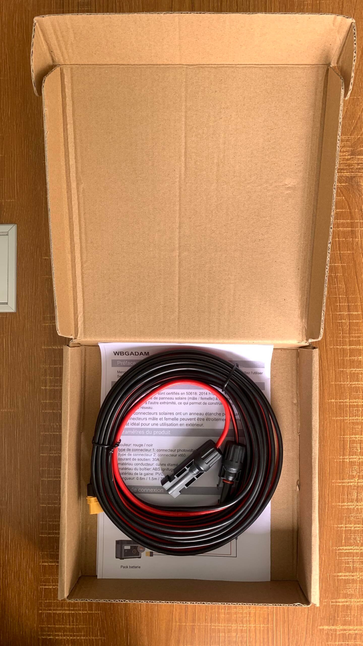 XT60アダプターケーブル ケーブルは頑丈な12AWG銅線でできています。湿気、UV、耐食性の抵抗に対して優れています。ダブルPVCジャケット、最高の断熱効果、105°Cの耐熱性。