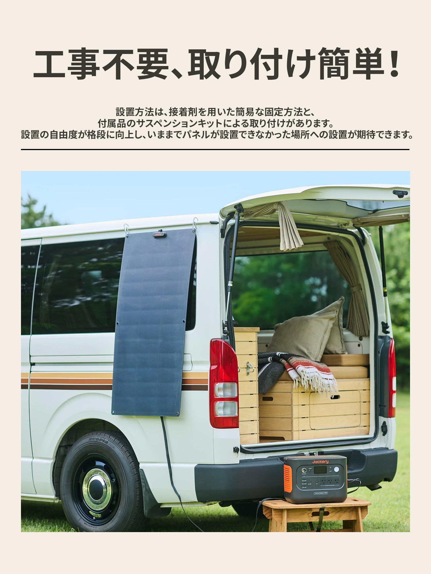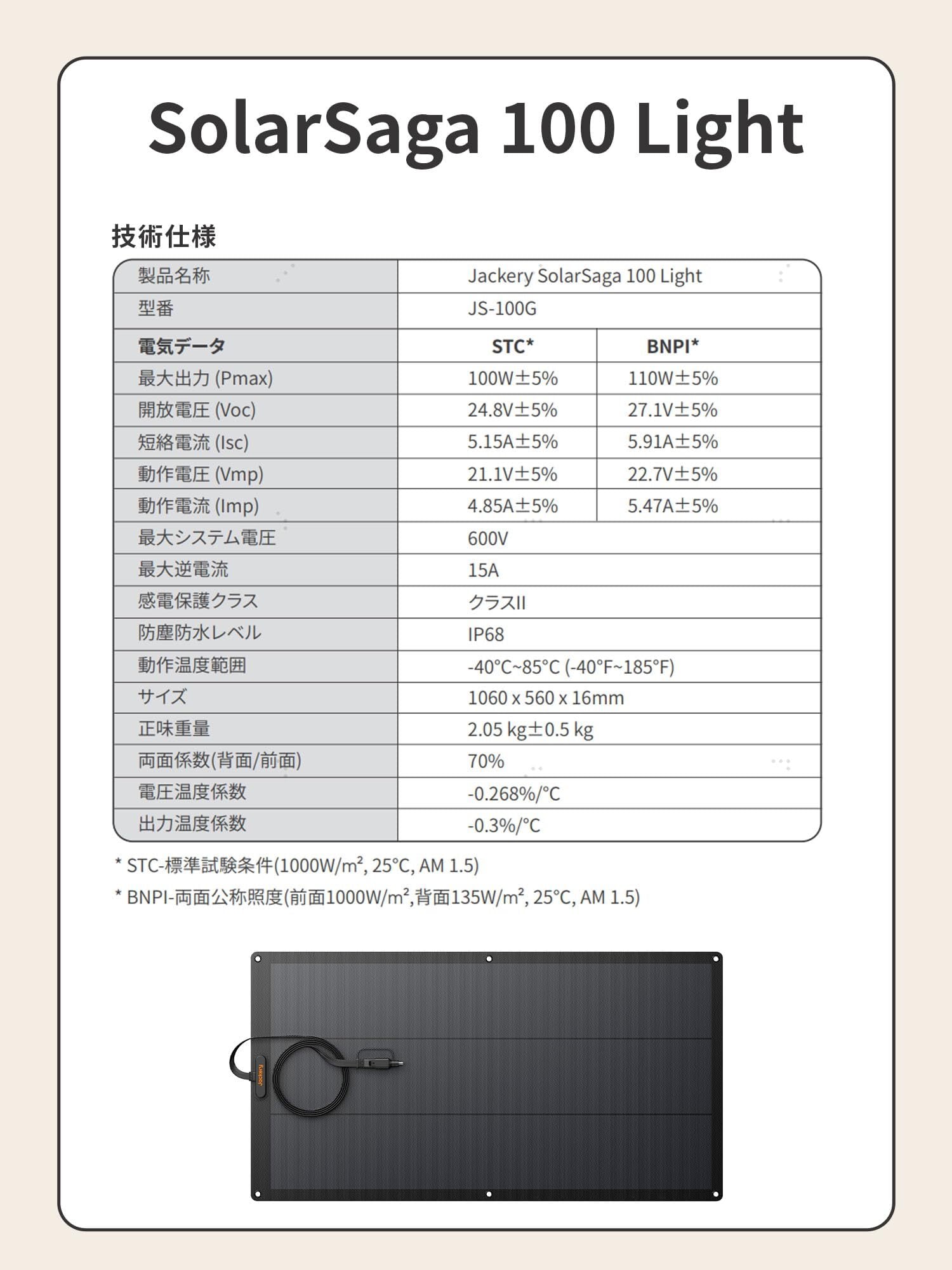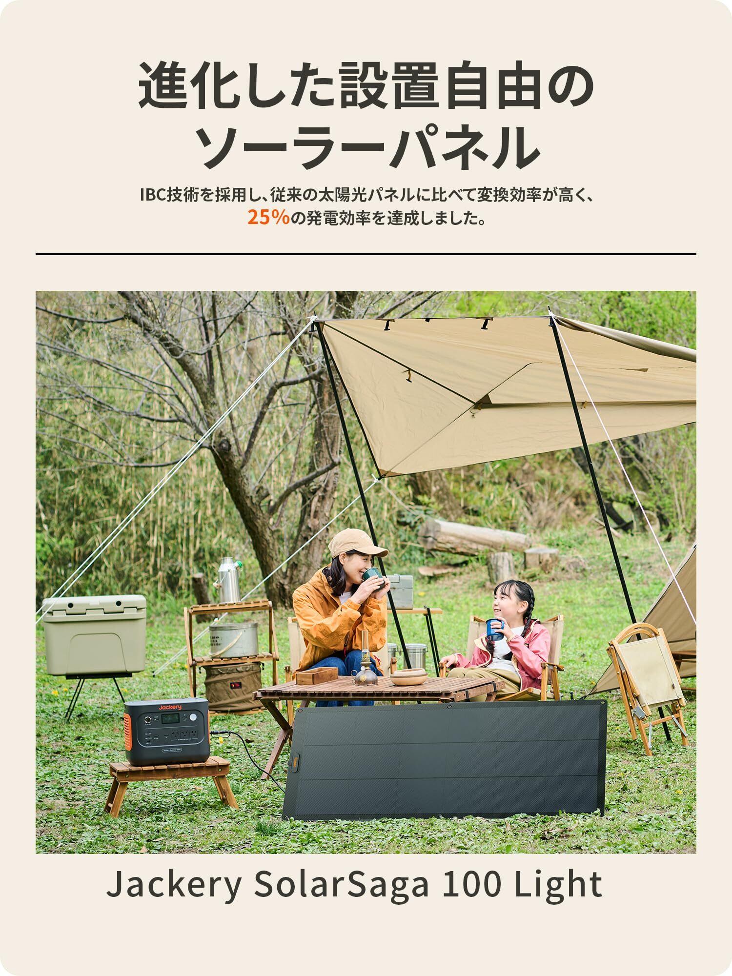 Jackery SolarSaga 100 Light ソーラーパネル 100W フレキシブル 太陽光パネル 柔性 U型曲げ可能 薄型 軽量 ソーラーチャージャー ETFE 高変換効率 コンパクト 単結晶 防災 IP68 防水防塵 ジャクリ ポータブル電源 対応