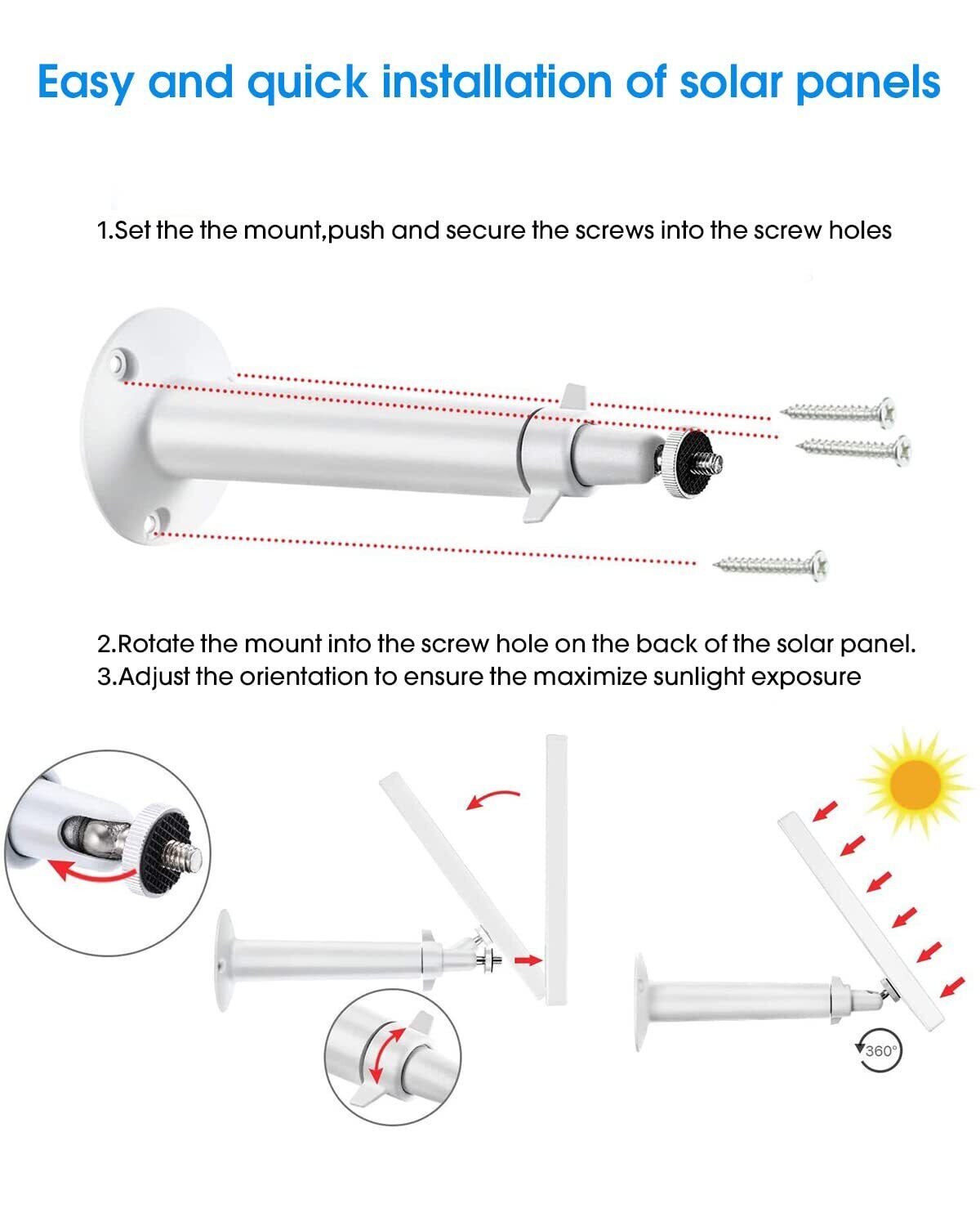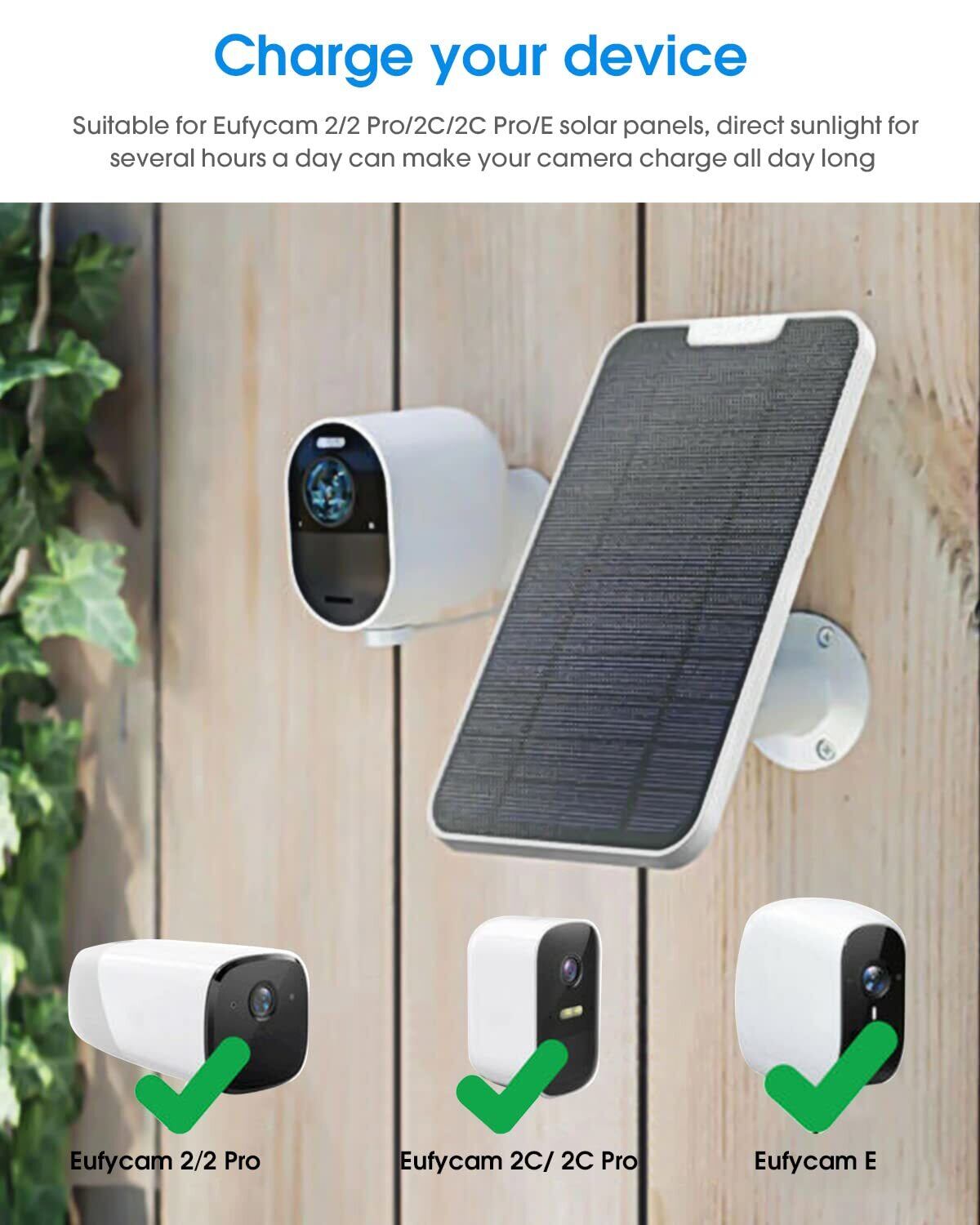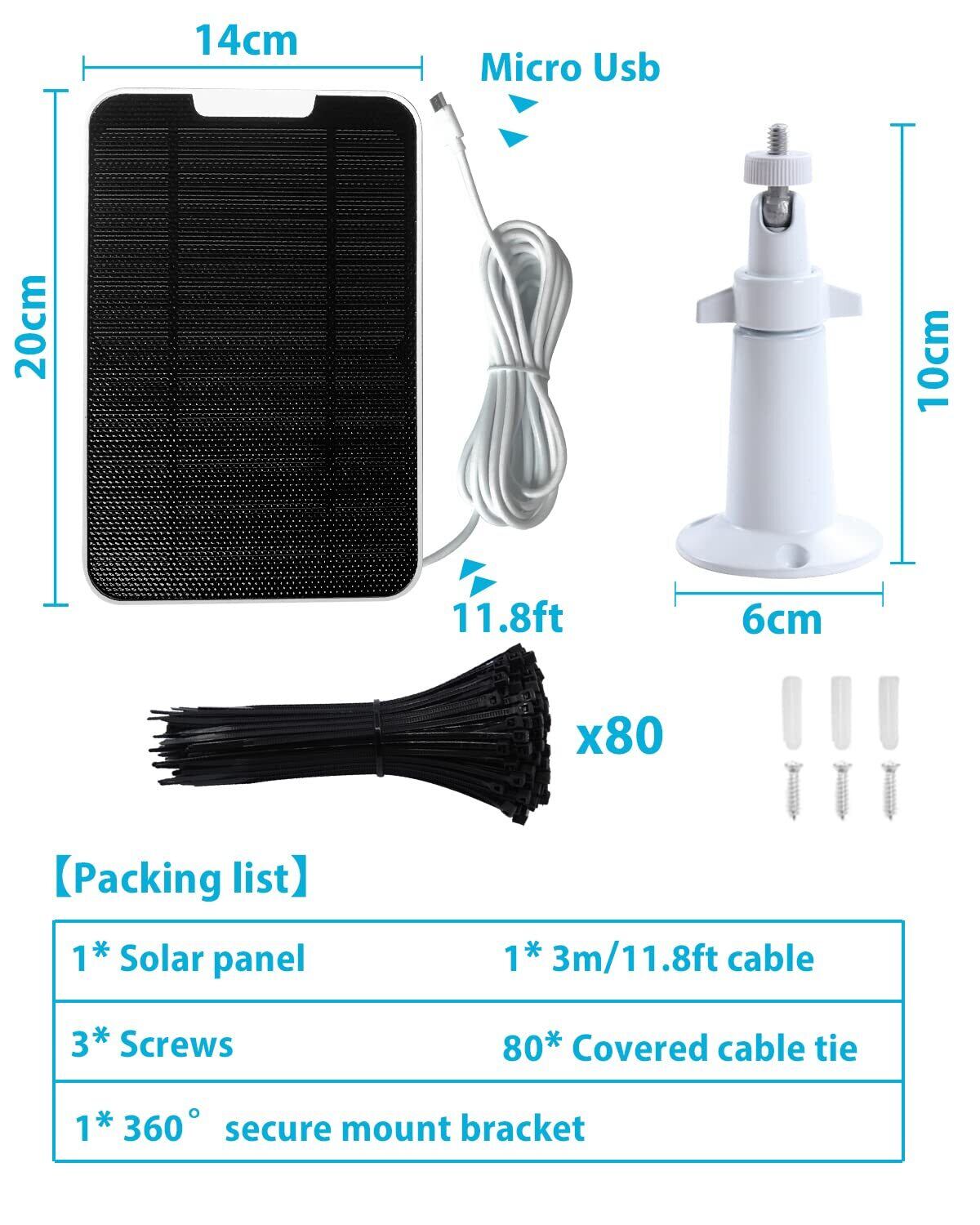 【あなたのデバイスを充電する】micro usb充電ポートを備えた屋外のセキュリティカメラと互換性があります。毎日数時間の直射日光により、自宅のセキュリティカメラは充電されたままになります。バッテリをしなくなり、電源アダプタは不要になりました。