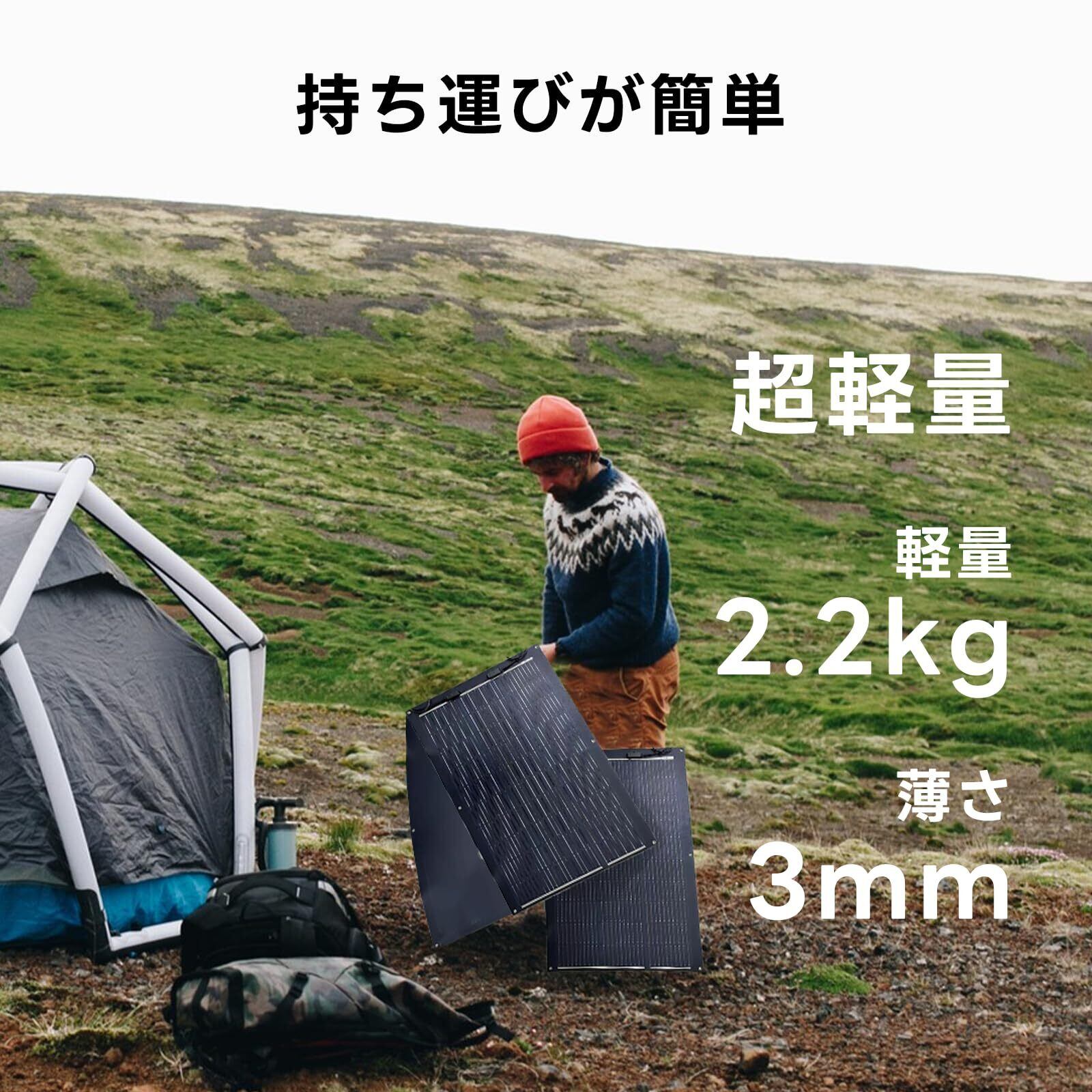 Sanraifu 100W フレキシブルソーラーパネル 単結晶ソーラーパネル 超薄型 超軽量 270°折り曲げ可能 0.25cm 超薄型ポータブル IP67 防水防塵 23%変換率 2.2kg超軽量太陽光パネル バッテリーシステム、キャンプ、地震、停電、防災、屋根、車中泊、RV用 表面 ブラック