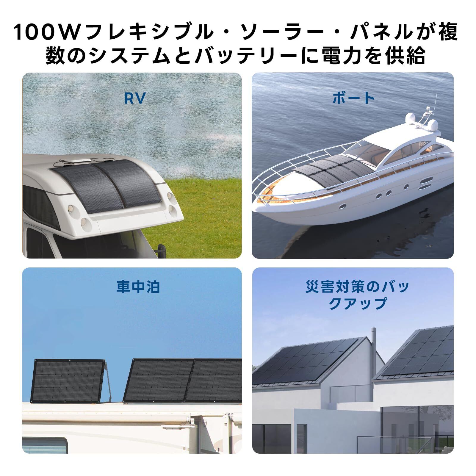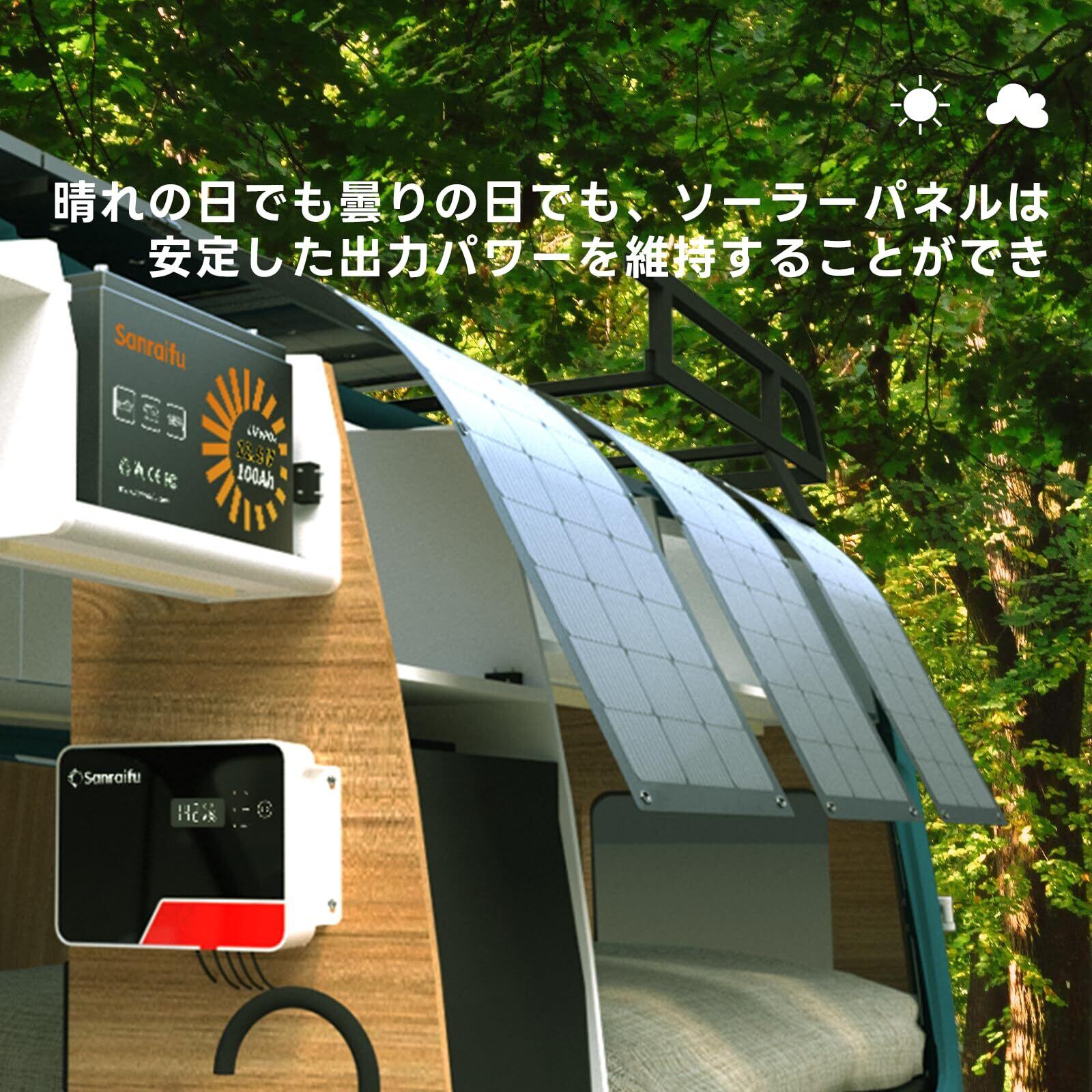 Sanraifu 100W フレキシブルソーラーパネル 単結晶ソーラーパネル 超薄型 超軽量 270°折り曲げ可能 0.25cm 超薄型ポータブル IP67 防水防塵 23%変換率 2.2kg超軽量太陽光パネル バッテリーシステム、キャンプ、地震、停電、防災、屋根、車中泊、RV用 表面 ブラック | KSショップ