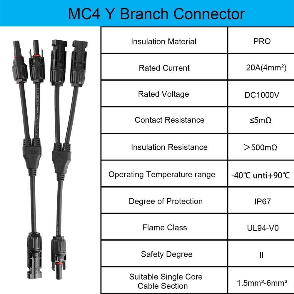 YCIND IARLION mc4 並列 コネクタ 分岐 ソーラーパネル用 延長ケーブル Yケーブル Y字型 ソーラー 並列 1M2F + 2M1F 耐候性 UV耐久 防水 mmfコネクタ | KSショップ