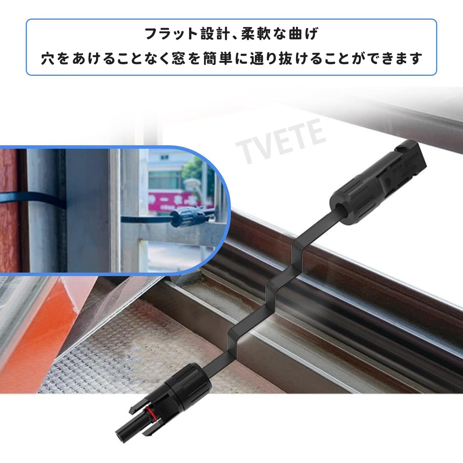 TVETE ソーラーパネル ケーブル ソーラーケーブル太陽光発電 ソーラー延長ケーブ ル【 2枚入り】 ソ ーラーパネル接続用 10AWG 窓フィードスルー 6mm²太陽光発電 耐候性 UV耐久 折り曲げ可能 超薄 (50cm) | KSショップ