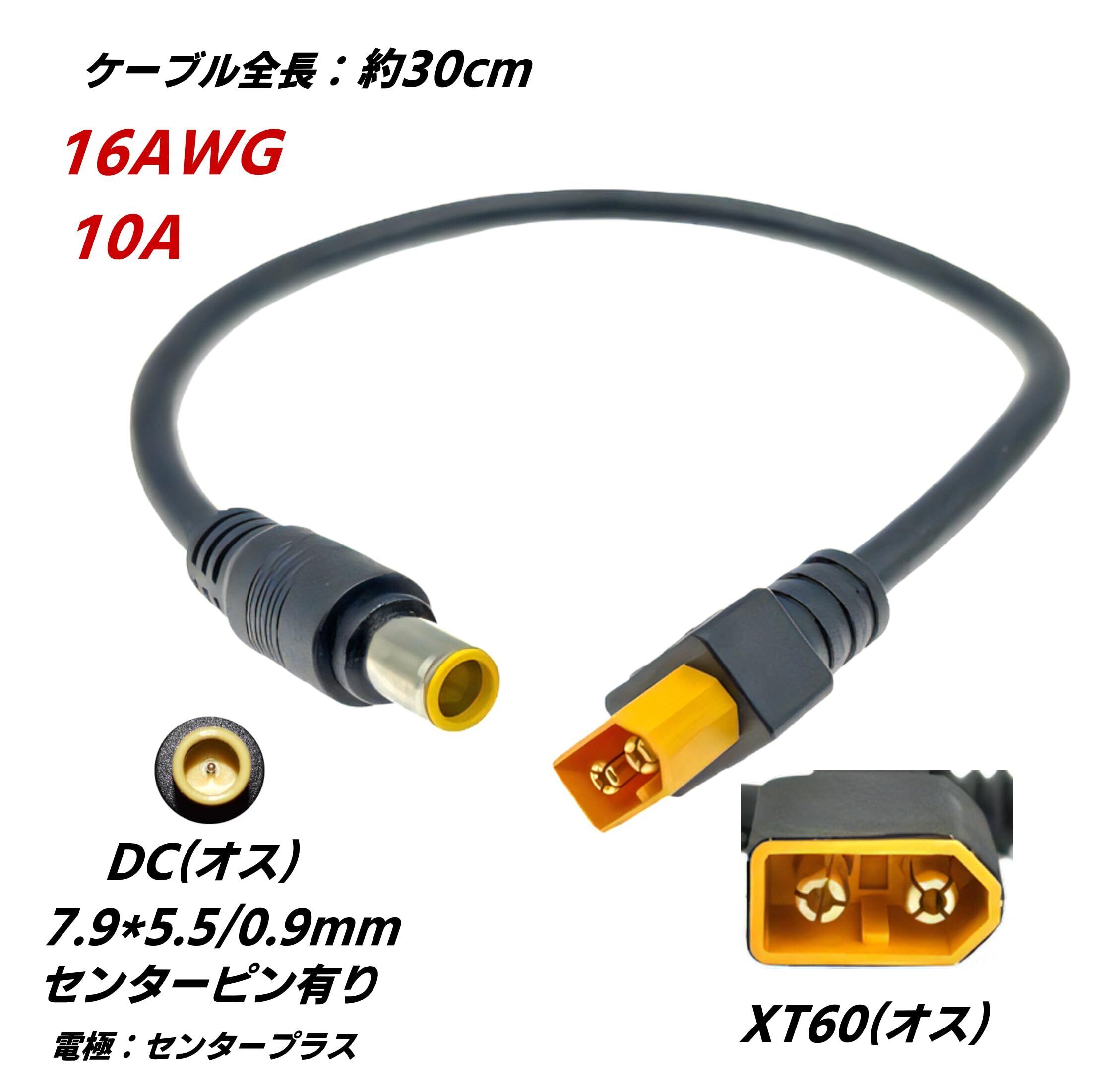 CNCTWO(コネクトツー) ソーラーパネル用変換ケーブル, XT60オス-DCオス 7.9mm/5.5-0.9mm,センターピン有り, 30cm, 16AWG 10A対応 C2XT60MDC7909M030 | KSショップ
