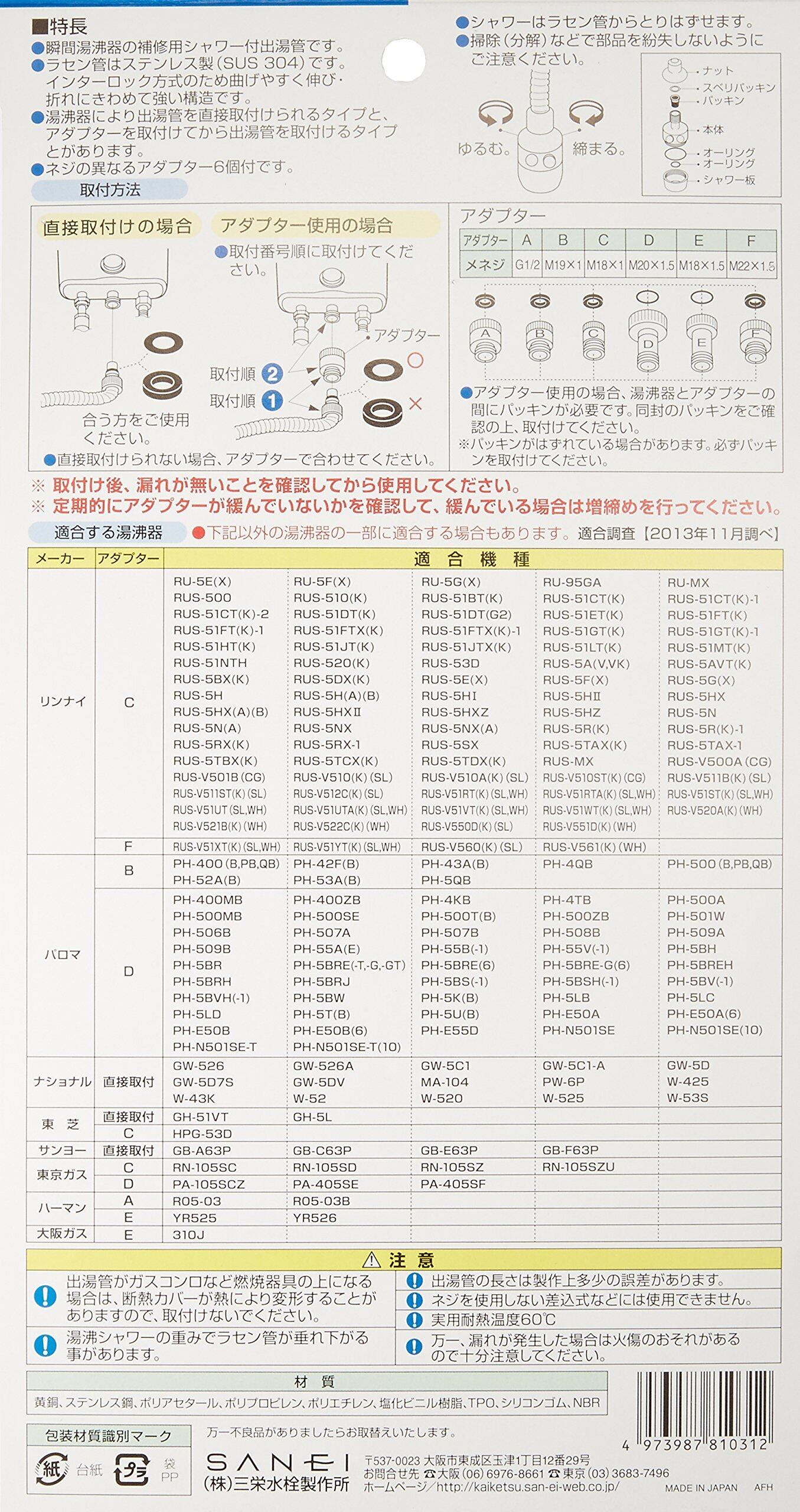 断熱カバー付のシャワー出湯管先端のシャワーでストレート・シャワー吐水に切替え可能長さ40cmアダプター付 ご注意(免責)>必ずお読みください ご注文後のキャンセルは対応できません。