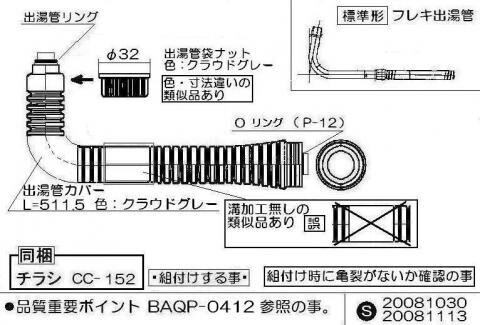 ※出湯管リング(Oリング小)、Oリング(Oリング大)、出湯管袋ナットは付属されています。