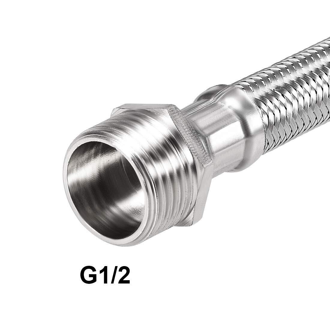 uxcell 蛇口供給コネクター 304ステンレス鋼製 シルバートーン ヒーター供給ホース拡張 フレキシブルパイプ供給ライン トイレの組み合わせ G127mmメス x G127mm オス 200mm長さ