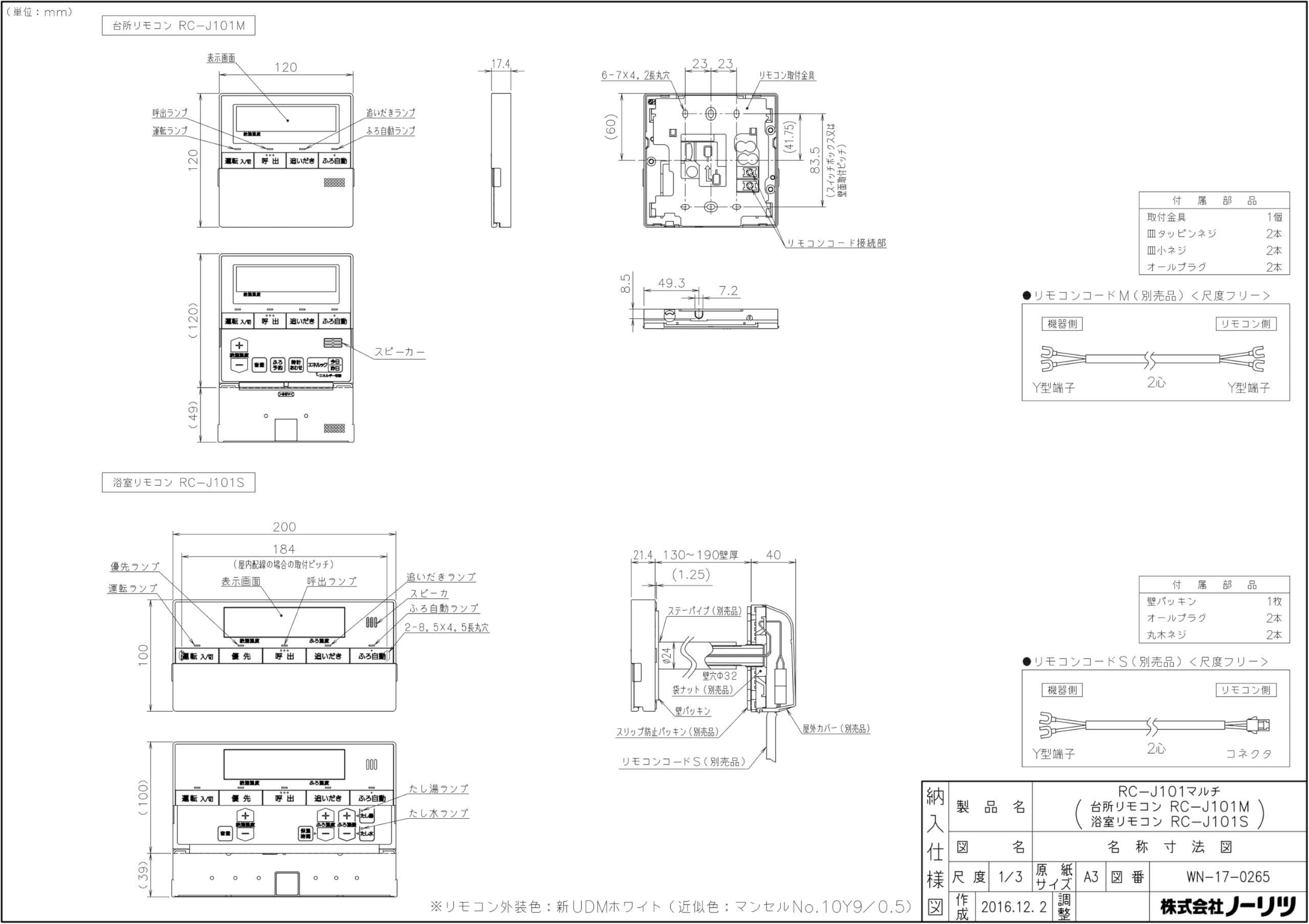 ノーリツ ガス給湯器専用リモコン RC-J101マルチセット