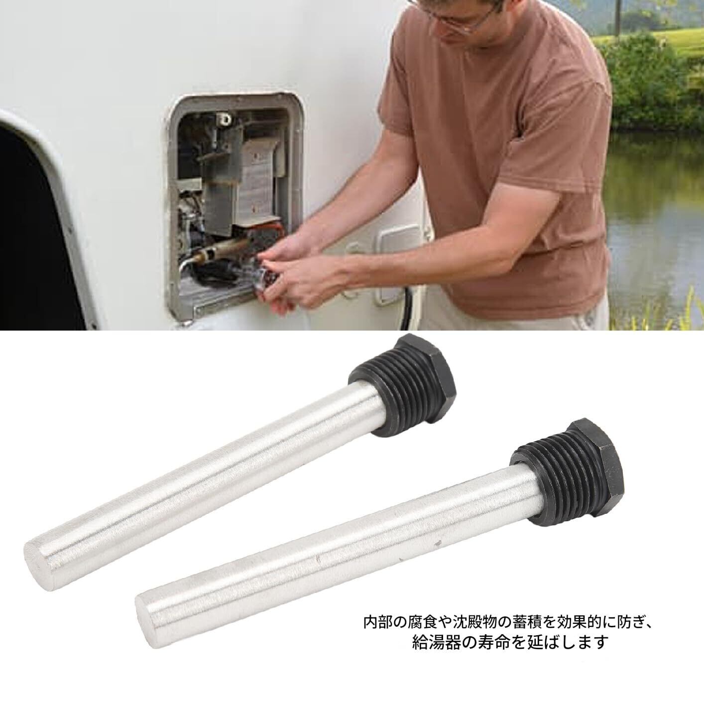 【取り付け簡単 専門知識不要】標準的な工具(プライヤーやレンチ)を使用し、古い陽極ロッドを取り外した後、新しいロッドをネジ込むだけで取り付け完了です。複雑な手順は不要で、DIY でも簡単に作業を進められ、RV のメンテナンスを手軽に行えます。定期的なで、給湯器の性能を常に最適な状態に保てます。