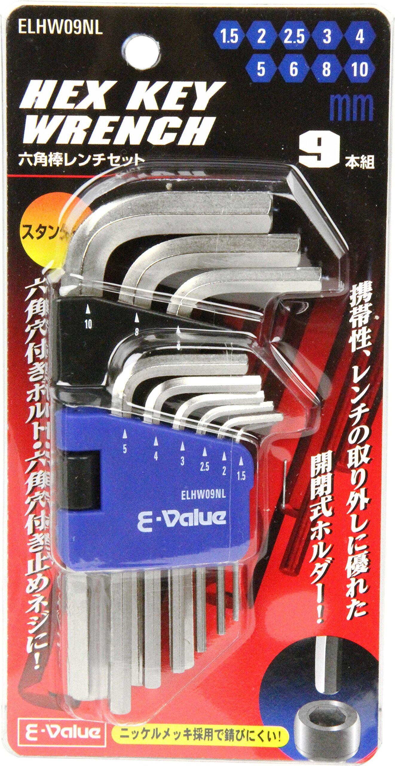 イーバリュー(E-Value) 六角棒レンチセット ミリ 1.5・2・2.5・3・4・5・6・8・10mm 9本組 ELHW09NL
