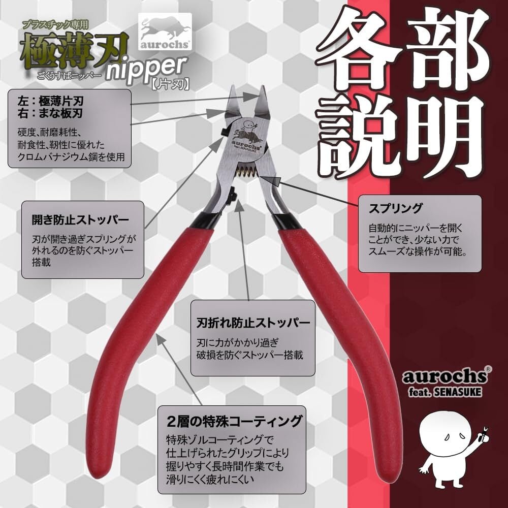 aurochs 極薄刃 ニッパー 片刃 精密 プラスチック専用 工具 プラモデル 模型 ゲートカット せなすけコラボモデル (レッド&ブラック/右手用)