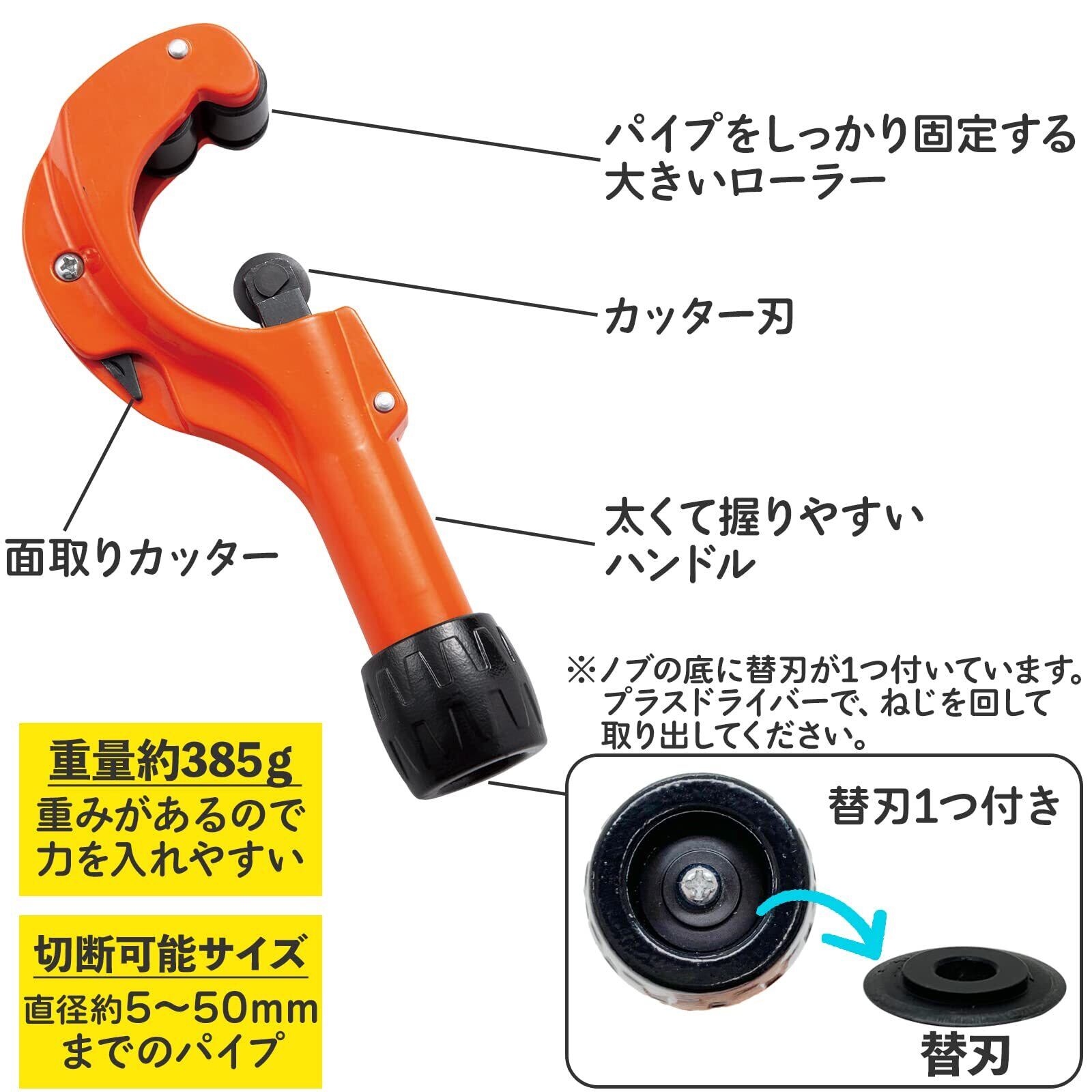 【仕様:約5~50㎜までのパイプが切断可能】付属品:替刃1個
