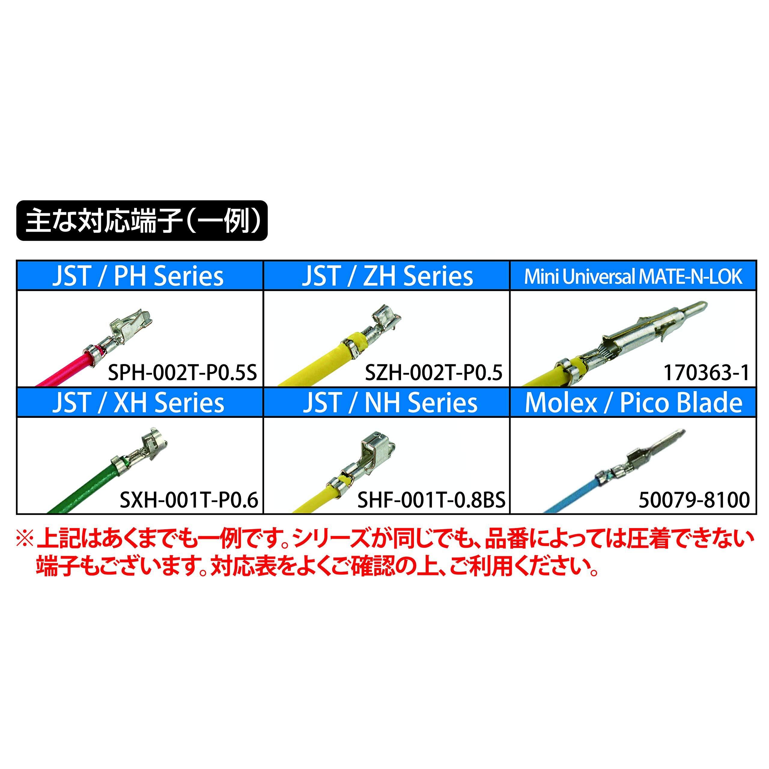 各参考対応電線 : 0.20~0.32mmφ、0.32~0.51mmφ、0.51~0.64mmφ、0.51~0.81mmφ