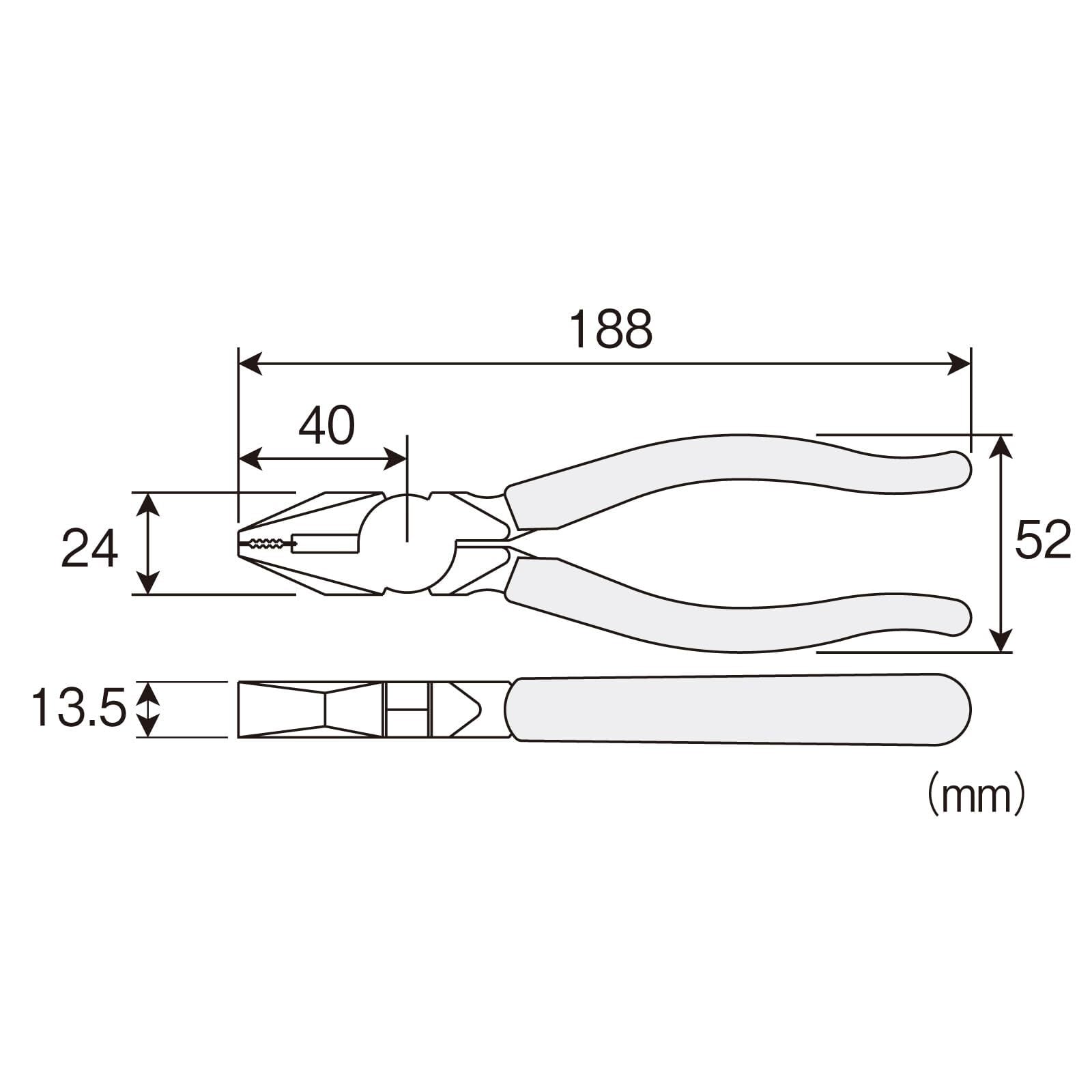 【切断能力】銅線:3.5mmφ、銅より線:5.5mm^2、VVF線:1.6mmφ×3芯【硬度HRC】刃部:60【重量】288g【全長】188mm【用途】電線の曲げ・切断、電気工事、電子機器や精密機械の組み立て・修理、電子工作、プラモデル・模型・アクセサリーの製作、ワイヤーワーク、釣り針の製作や修理