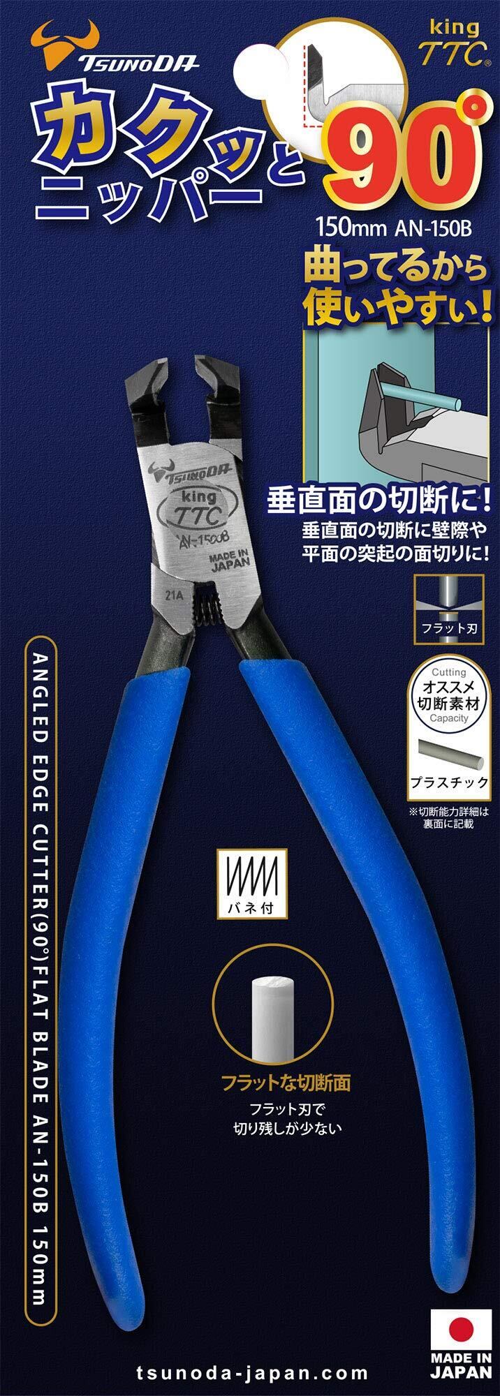 ツノダ king TTC カクッとニッパー90° 狭所作業 変則的な箇所の切断 エンドニッパーでは切りにくい箇所に最適 3Dプリンタのサポート材除去 150mm 日本製 燕三条 AN-150B | KSショップ