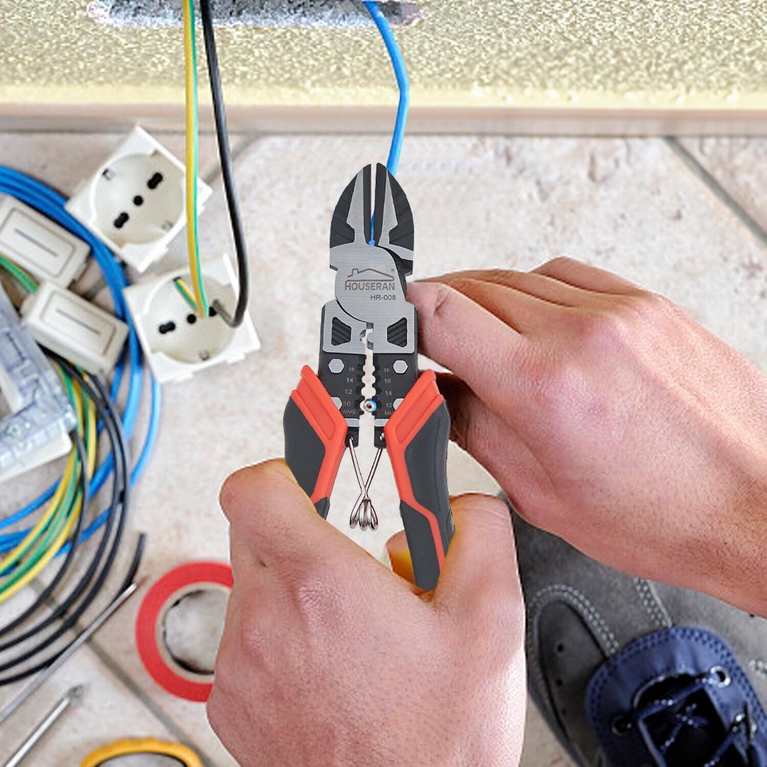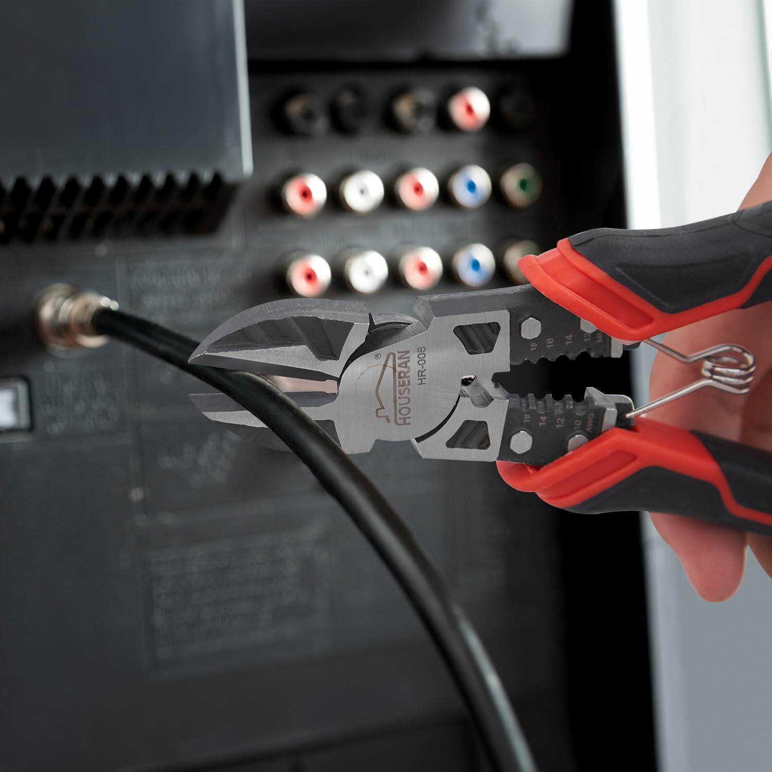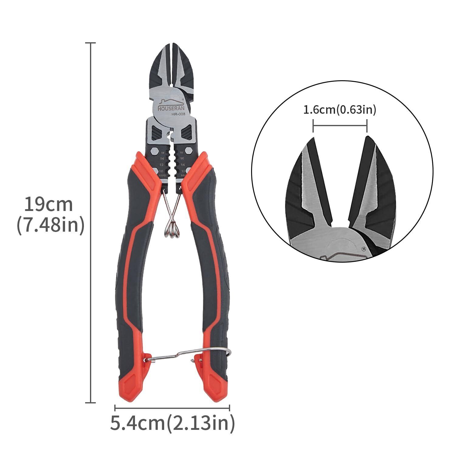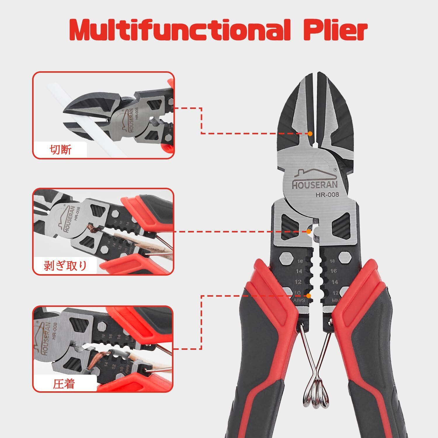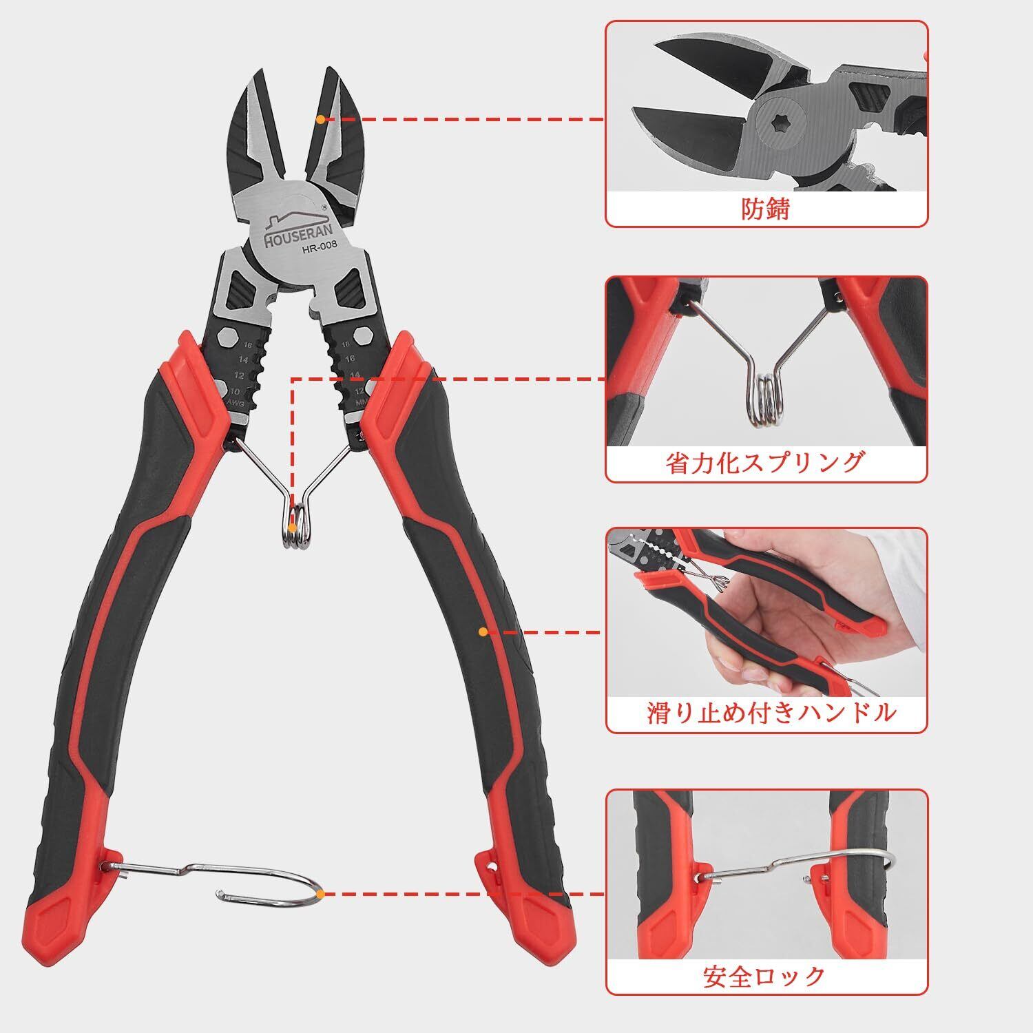 HOUSERAN 強力ニッパー 190mm ペンチ 電工ニッパー 多機能 ケーブルカッター 工具 ばね付き ロック付き