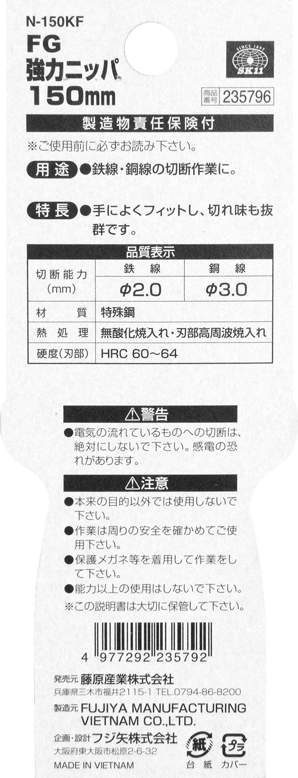 SK11(エスケー11) FG強力ニッパ 150mm JIS入り N-150KF