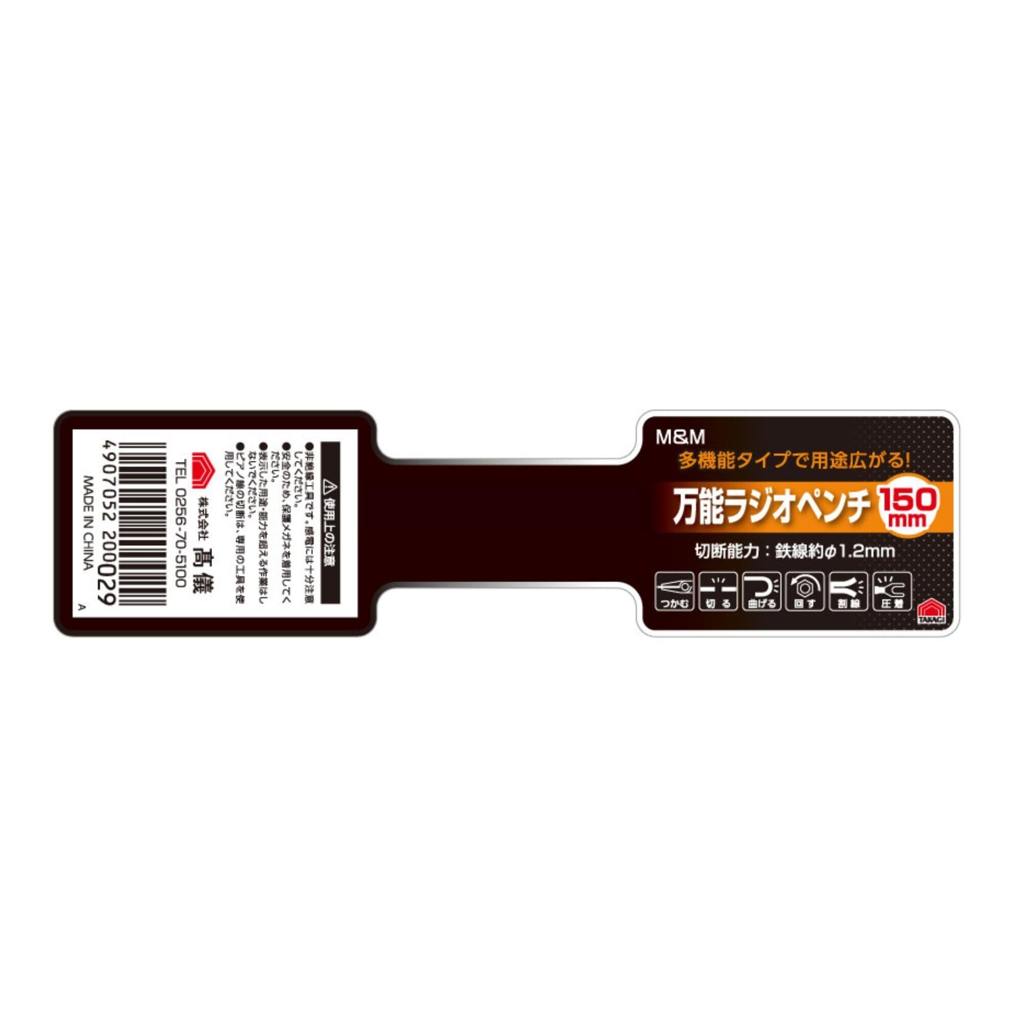 高儀(Takagi) M&M 成形グリップ 万能ラジオペンチ 150mm
