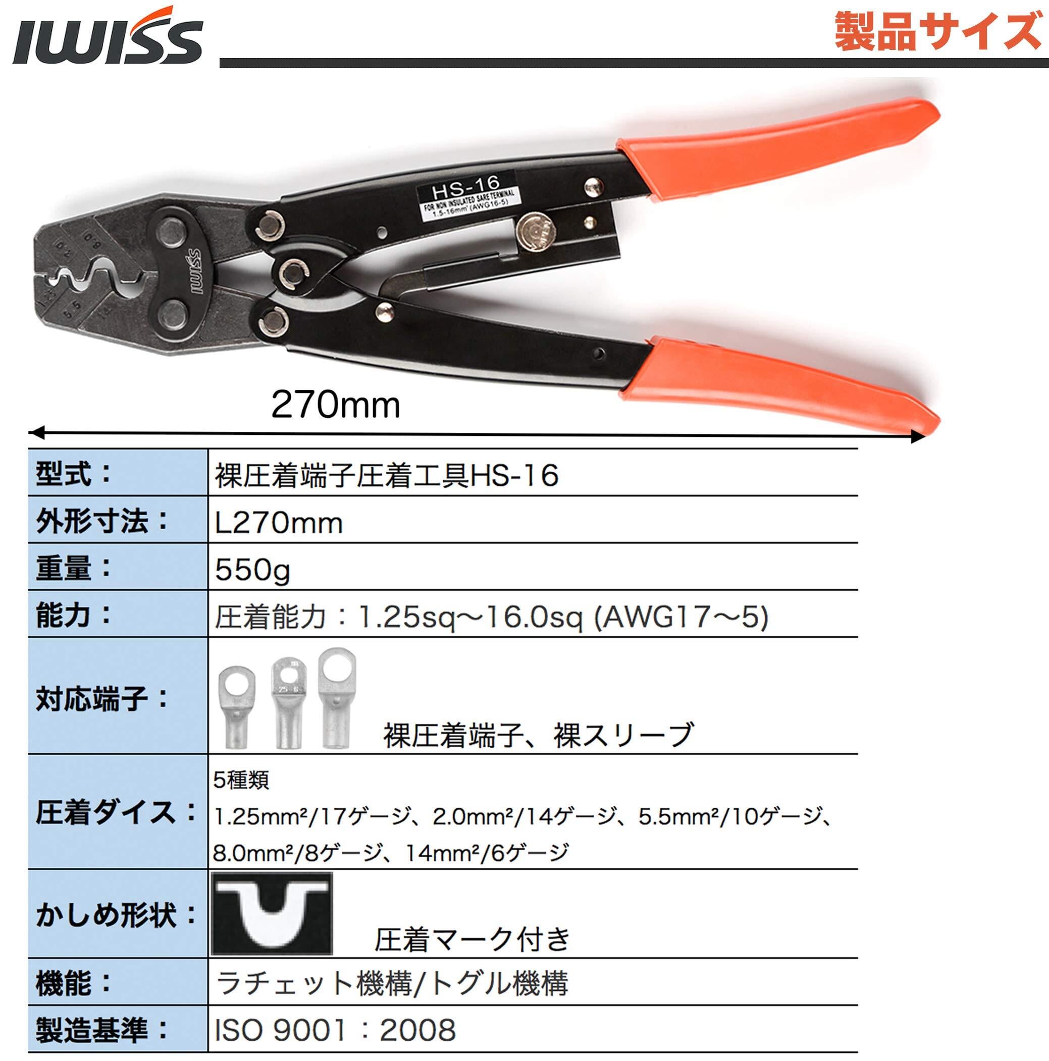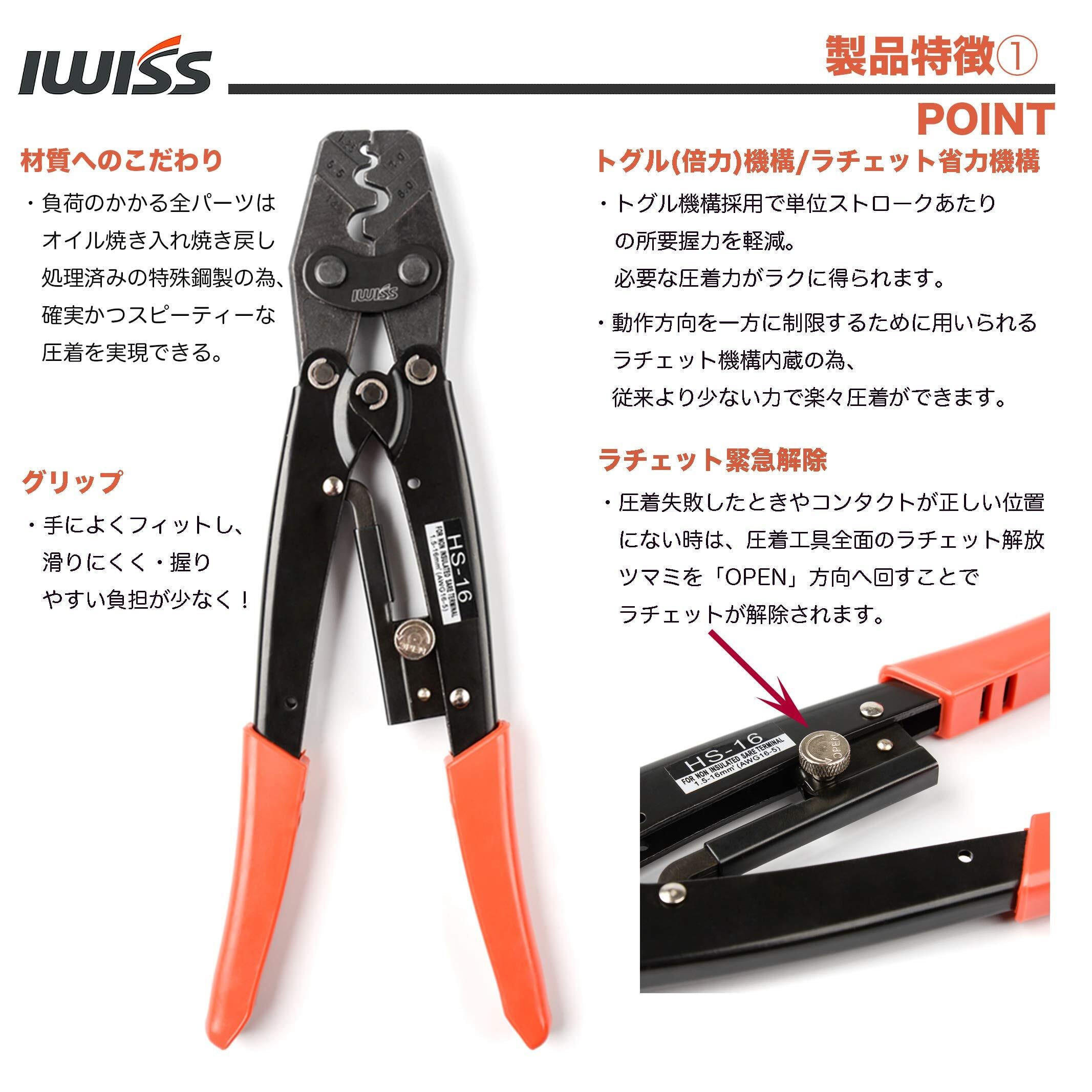 アイウィス(IWISS) 裸圧着端子 裸圧着スリーブ 圧着工具 汎用タイプ 1.25-16.0sq対応 HS-16