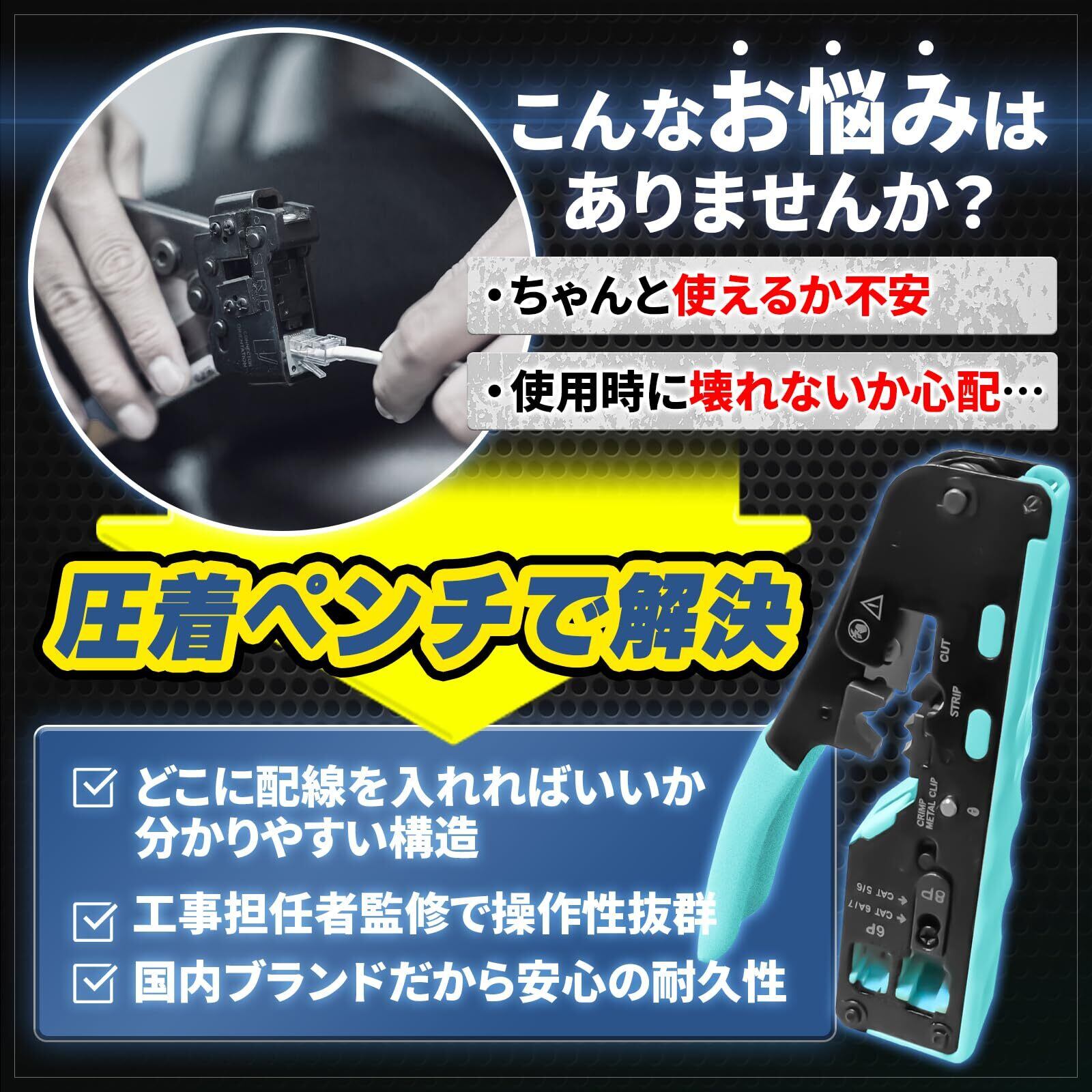 【現役工事担任者監修】 圧着工具 かしめペンチ LAN ケーブル製作 CAT5e/CAT6/CAT7対応 CAT5e/CAT6用RJ45貫通型コネクター付属 RJ12対応 配線図 替刃付き(AP001G) 【MacaCena(マカセナ)】 | KSショップ
