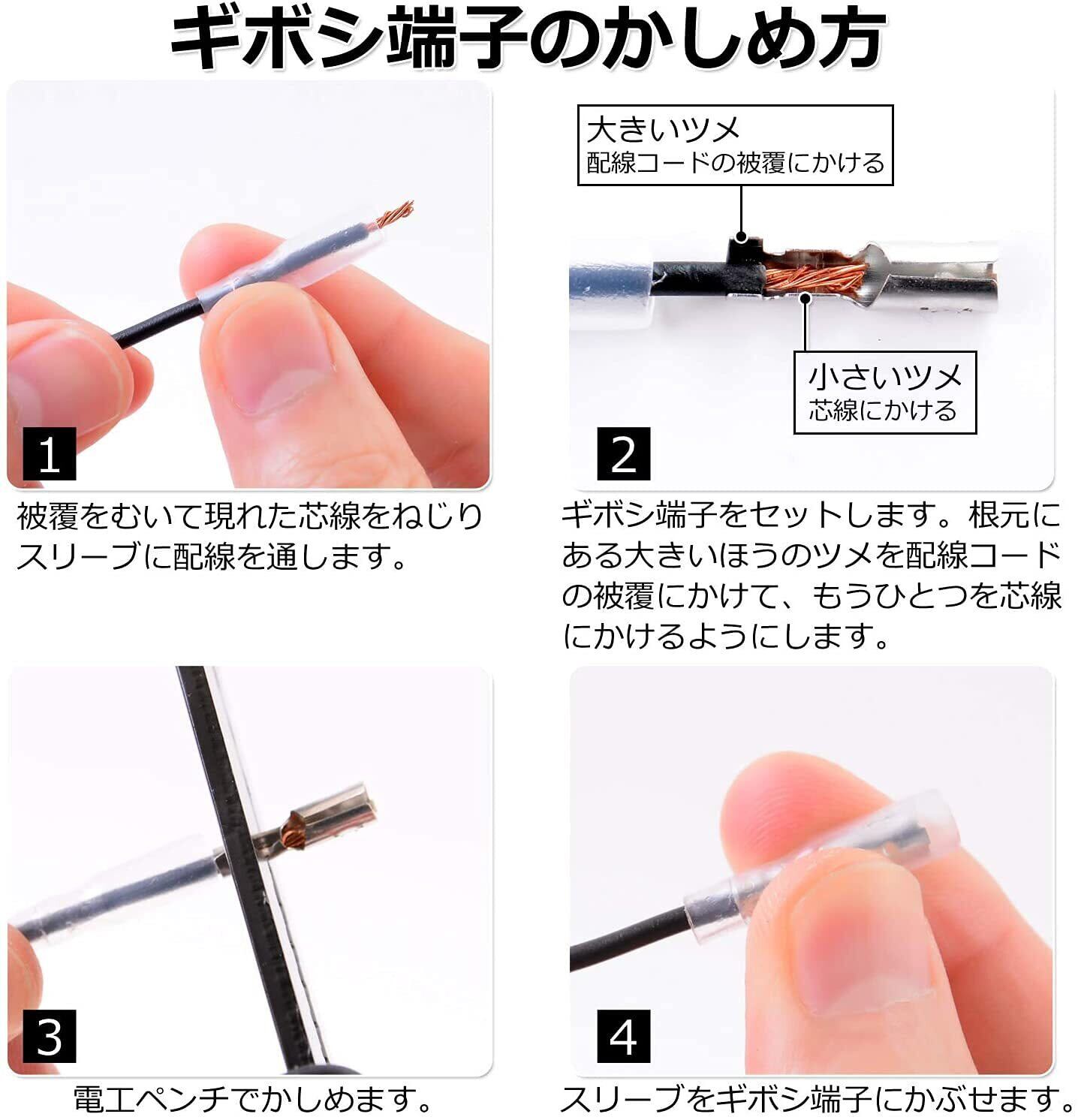 裸端子端子圧着: 1.5、2.5、4.0〜6.0sq