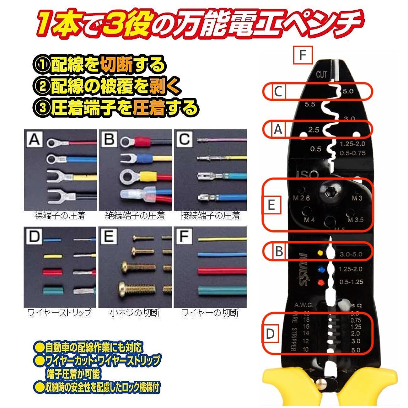 アイウィス(IWISS) コードプライヤー 電工ペンチ 圧着 ストリップ ネジ切断 クリンピングプライヤー (オープンバレル・裸・絶縁端子対応 WS-048)