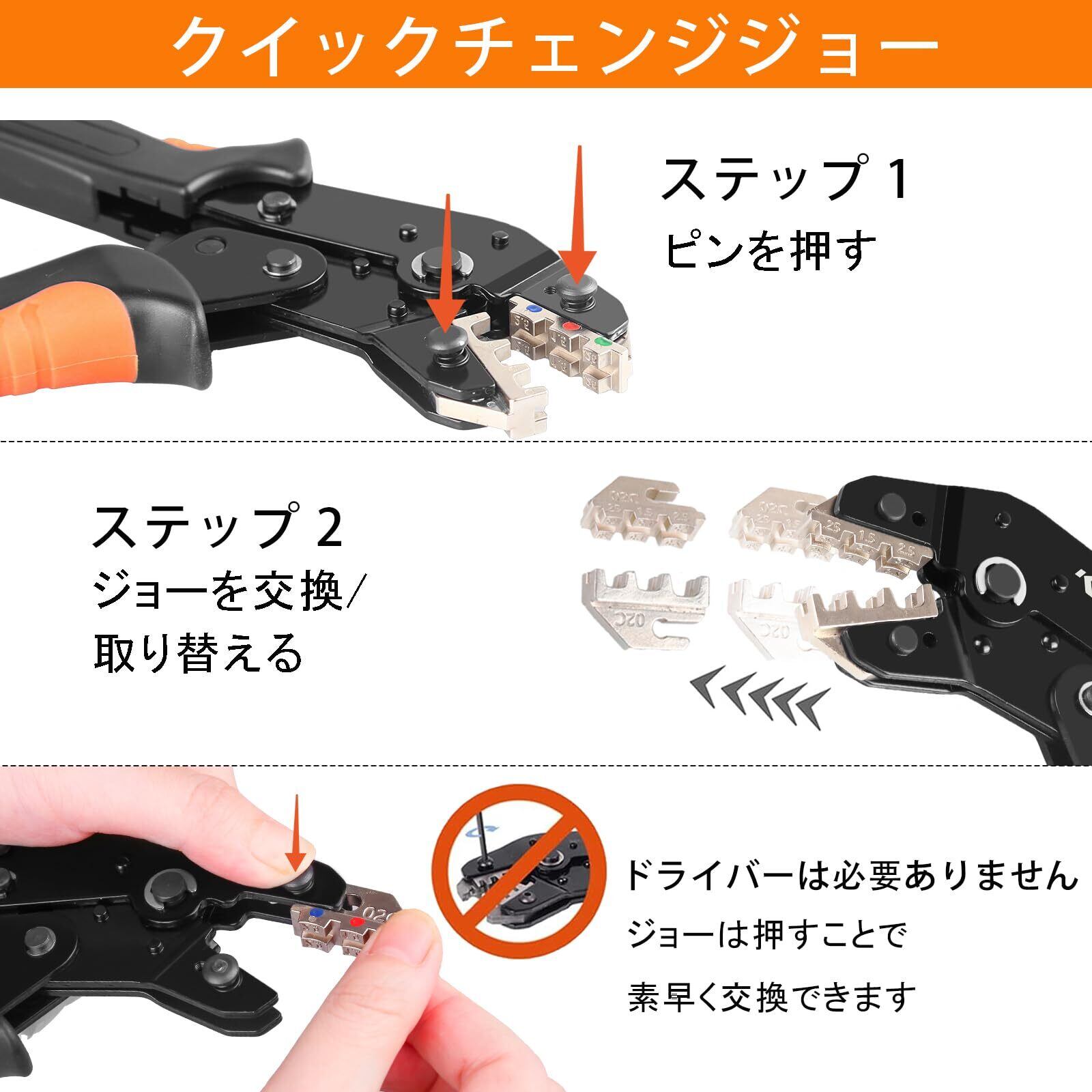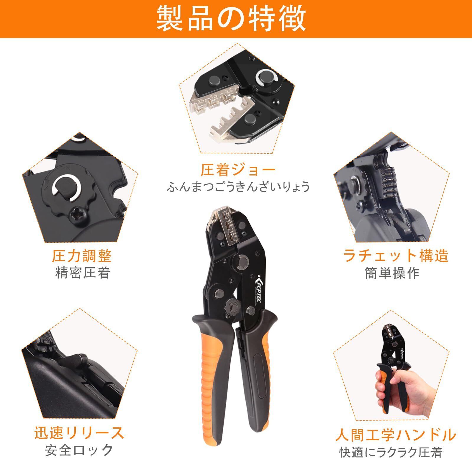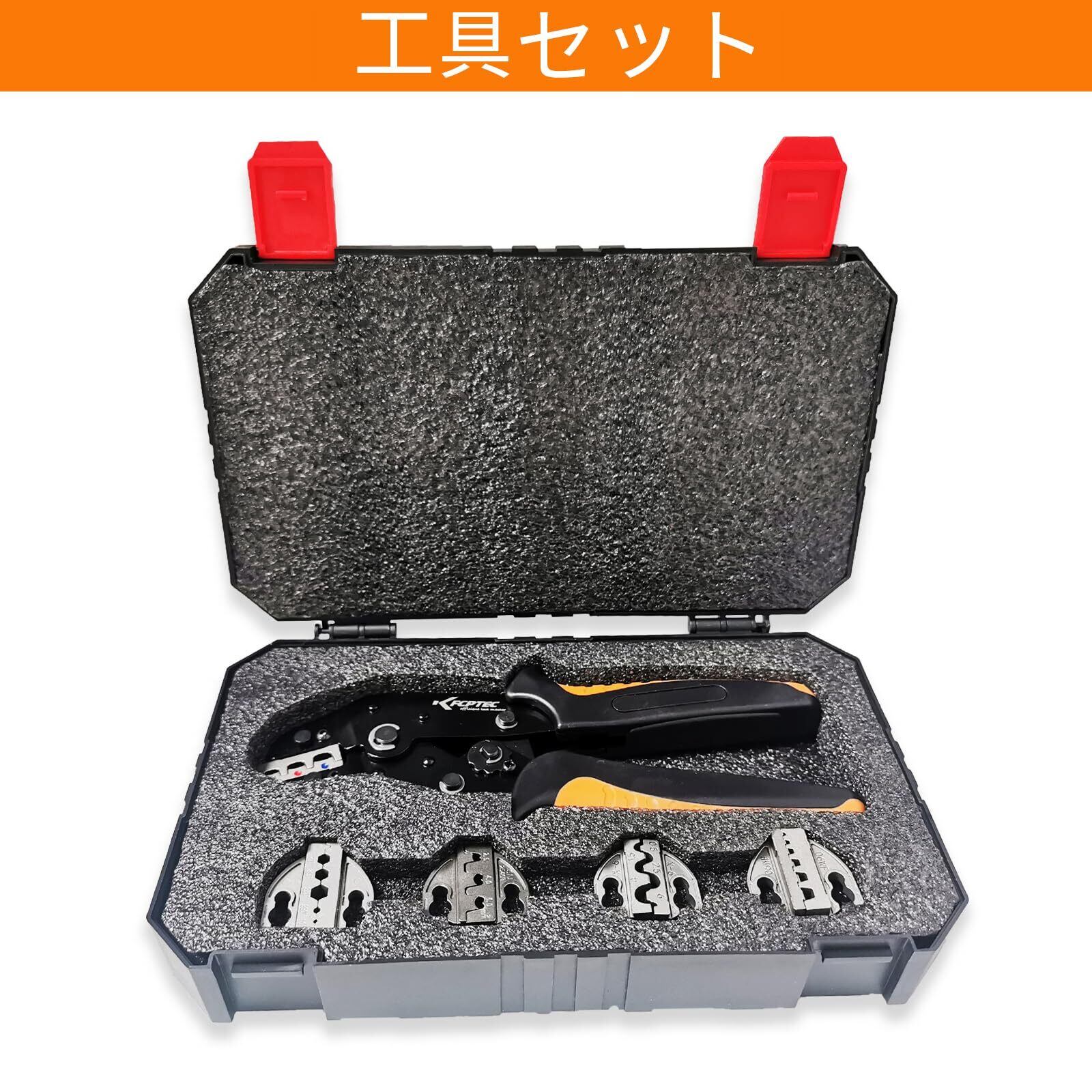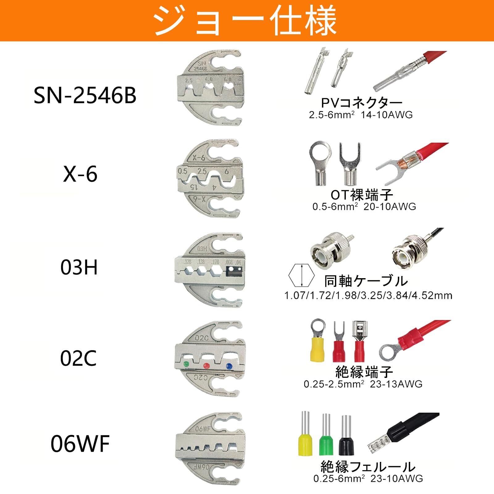 KF CPTEC 圧着工具セット 6点 – ジョー搭載 – スペード端子、絶縁・非絶縁端子、フェルール、太陽光コネクタ、同軸ケーブル対応