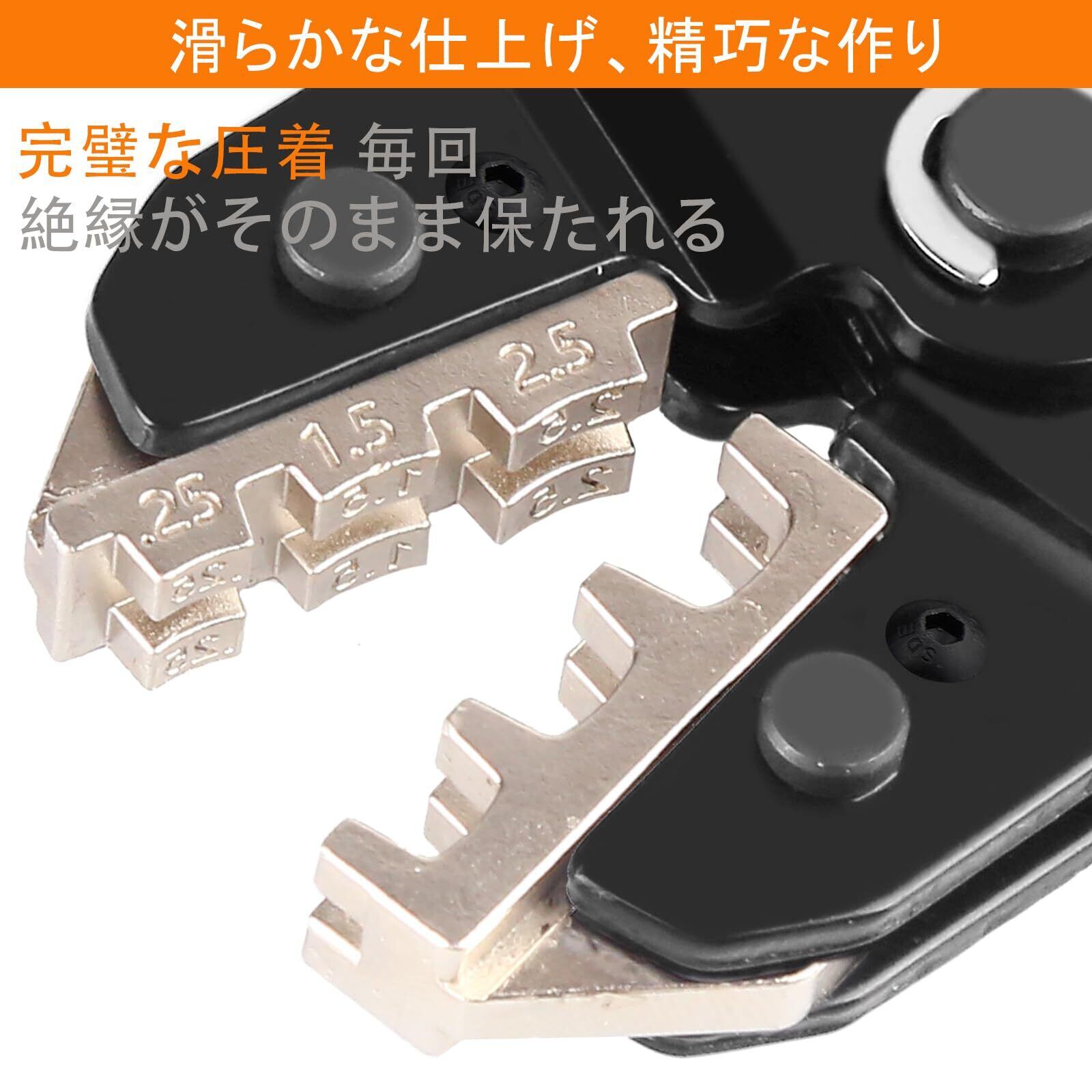 多用途圧着キット – スペード端子、絶縁/非絶縁端子、エンドフェルール、MC4ソーラーコネクタ、同軸ケーブルに対応。家庭配線からDIY、屋外工事まで幅広く活躍します。