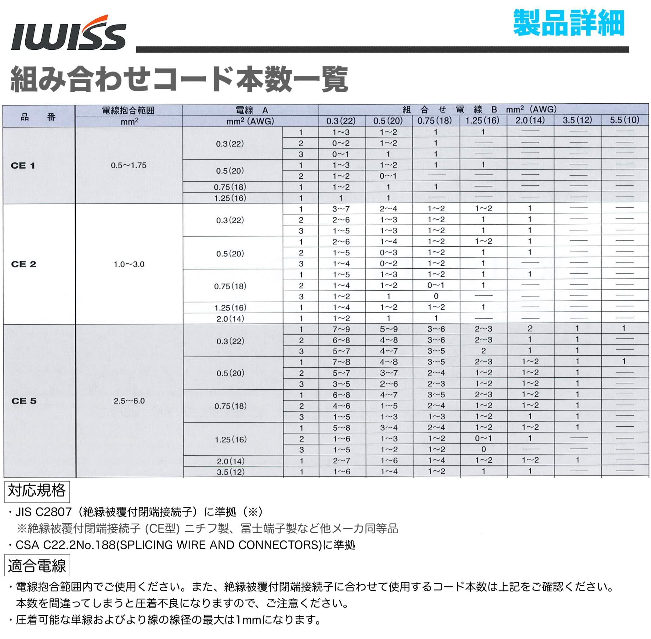 アイウィス(IWISS) 絶縁被覆付閉端接続子 圧着工具 ラチェット式 JIS準拠 CE-1 / CE-2 / CE-5用 IWS-125