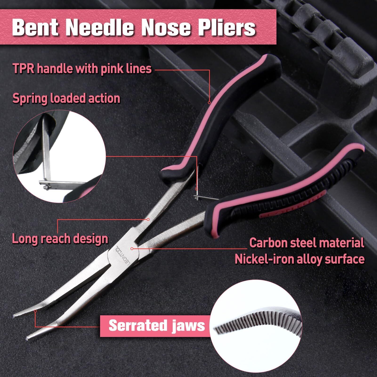 用途: エクストラ・ロング・ベント・ノーズ・プライヤー、通常のベント・ノーズ・プライヤーより長く、狭い場所での使用、ワイヤーのグリップや曲げ、細かいアイテムのグリップなどに最適です。より強いグリップのための鋸歯状の顎を使って