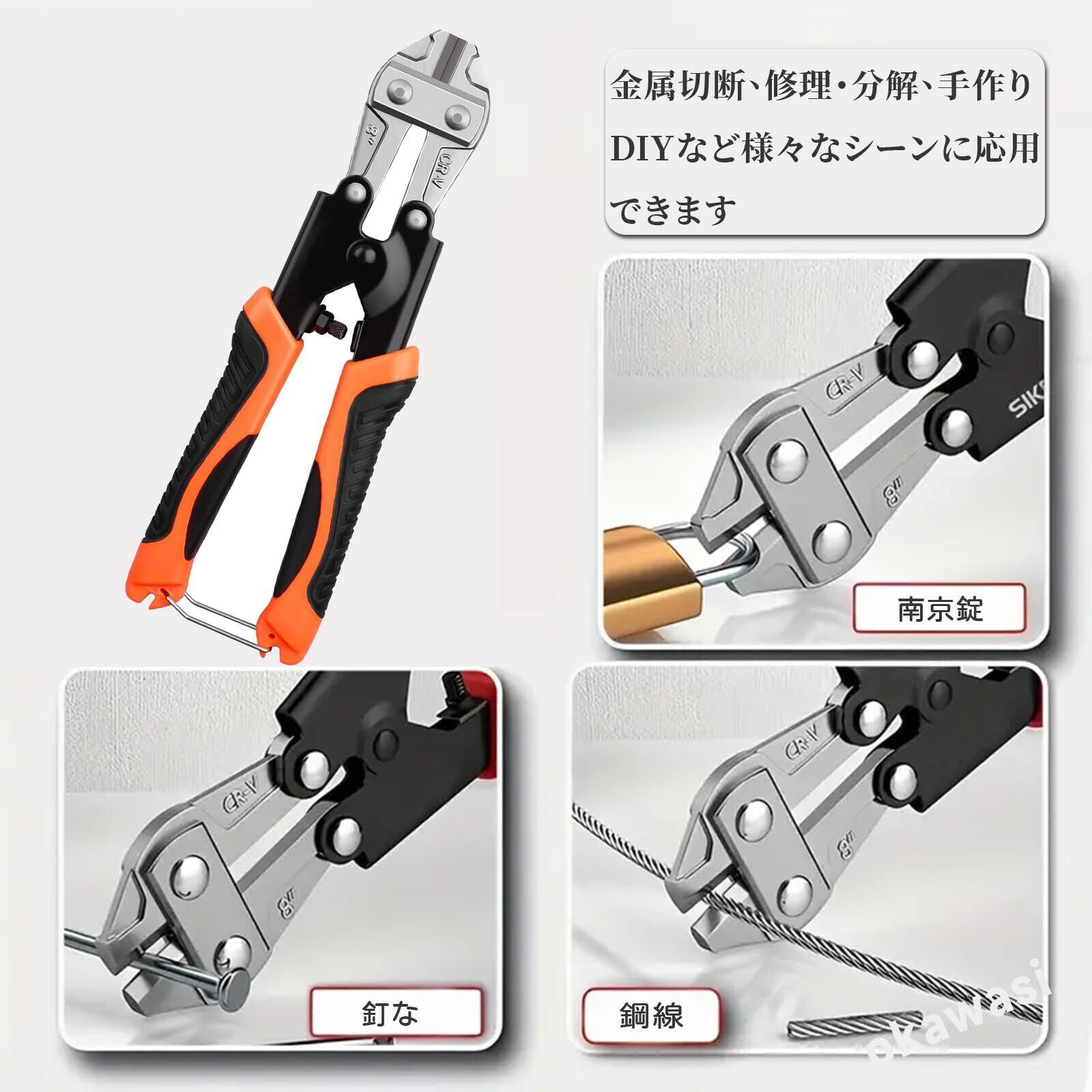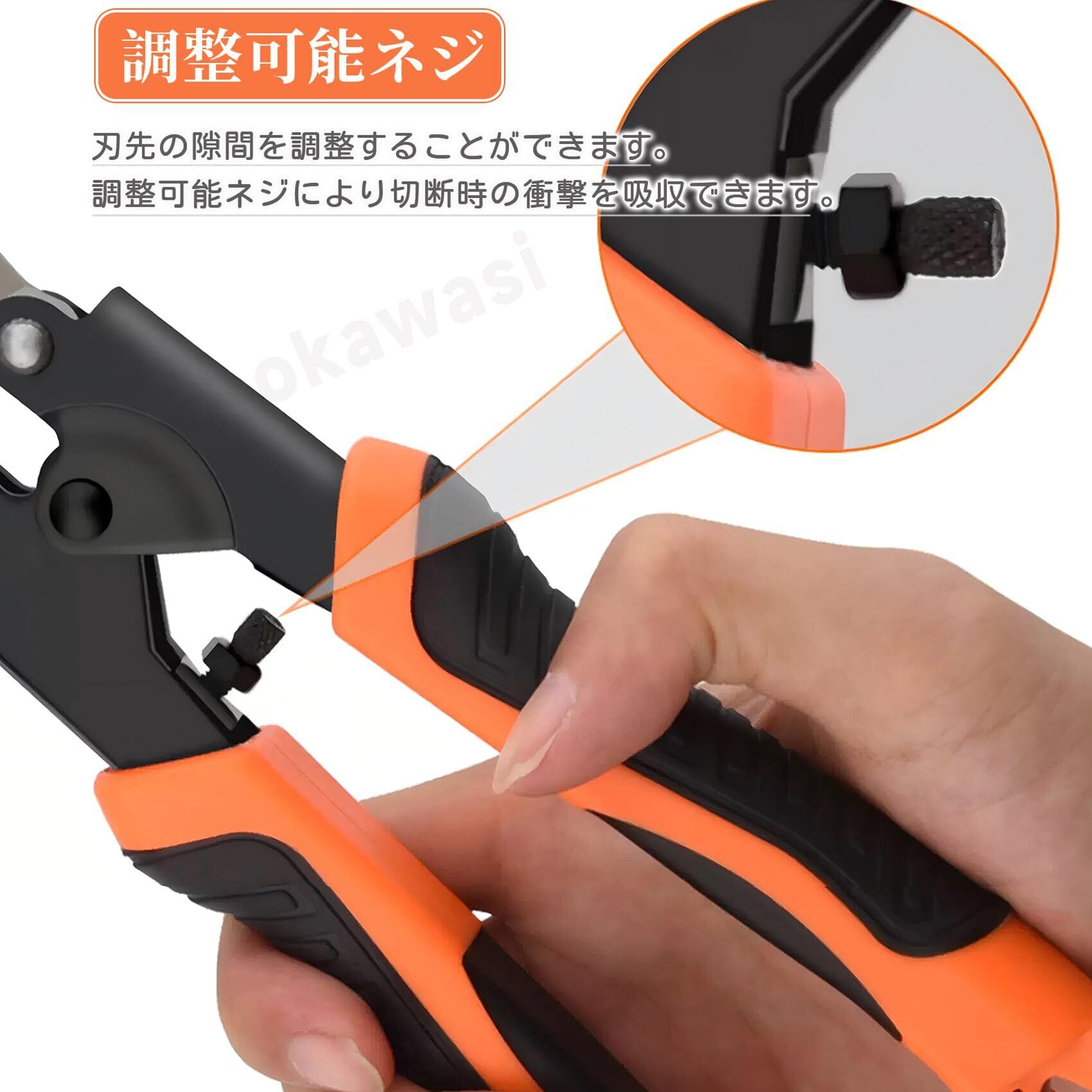 OKAWASI ワイヤーカッター 硬鋼線カッター ボルトクリッパー 番線カッター 刃先の開き 調整可能 ボルトカッター 硬鋼線カッター CR-V鋼 滑り止めグリップ ルト ロック機能付き 金属 切断工具 | KSショップ